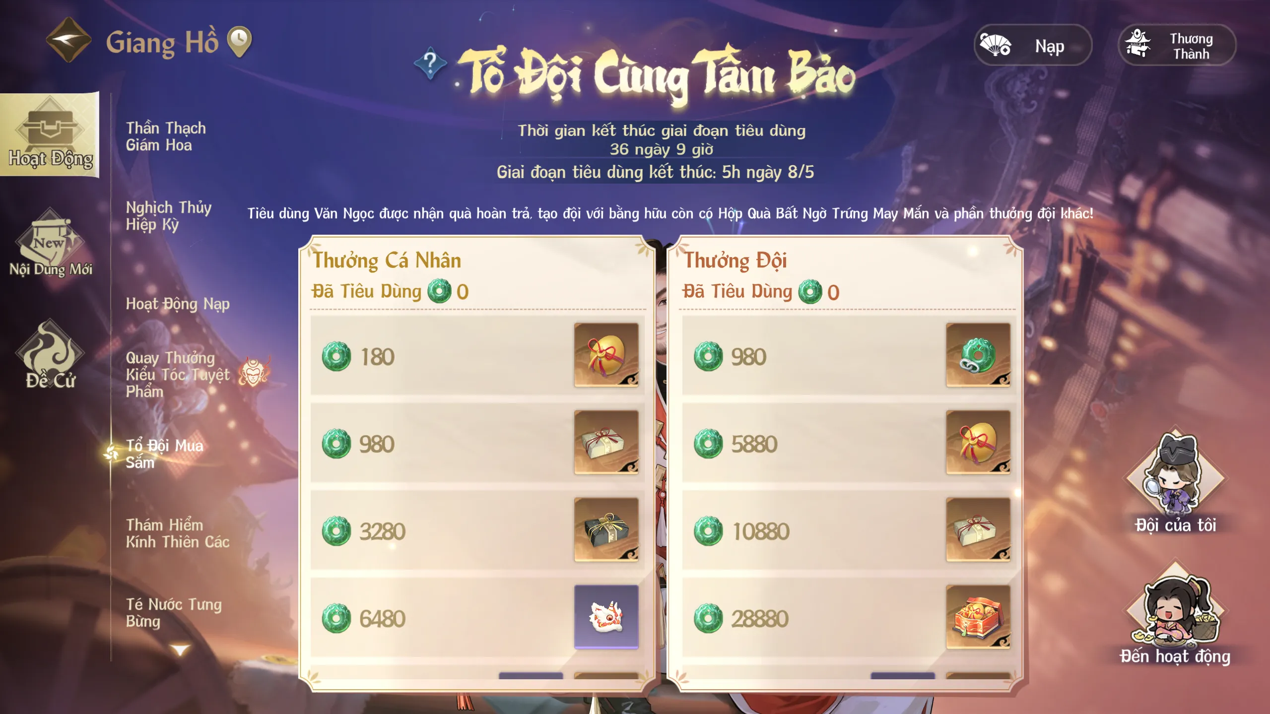Trong thời gian phiên bản 1.2.1, người chơi có thể đến trang Hoạt Động để tạo hoặc tham gia một đội mua sắm và cùng bằng hữu tham gia hoạt động.