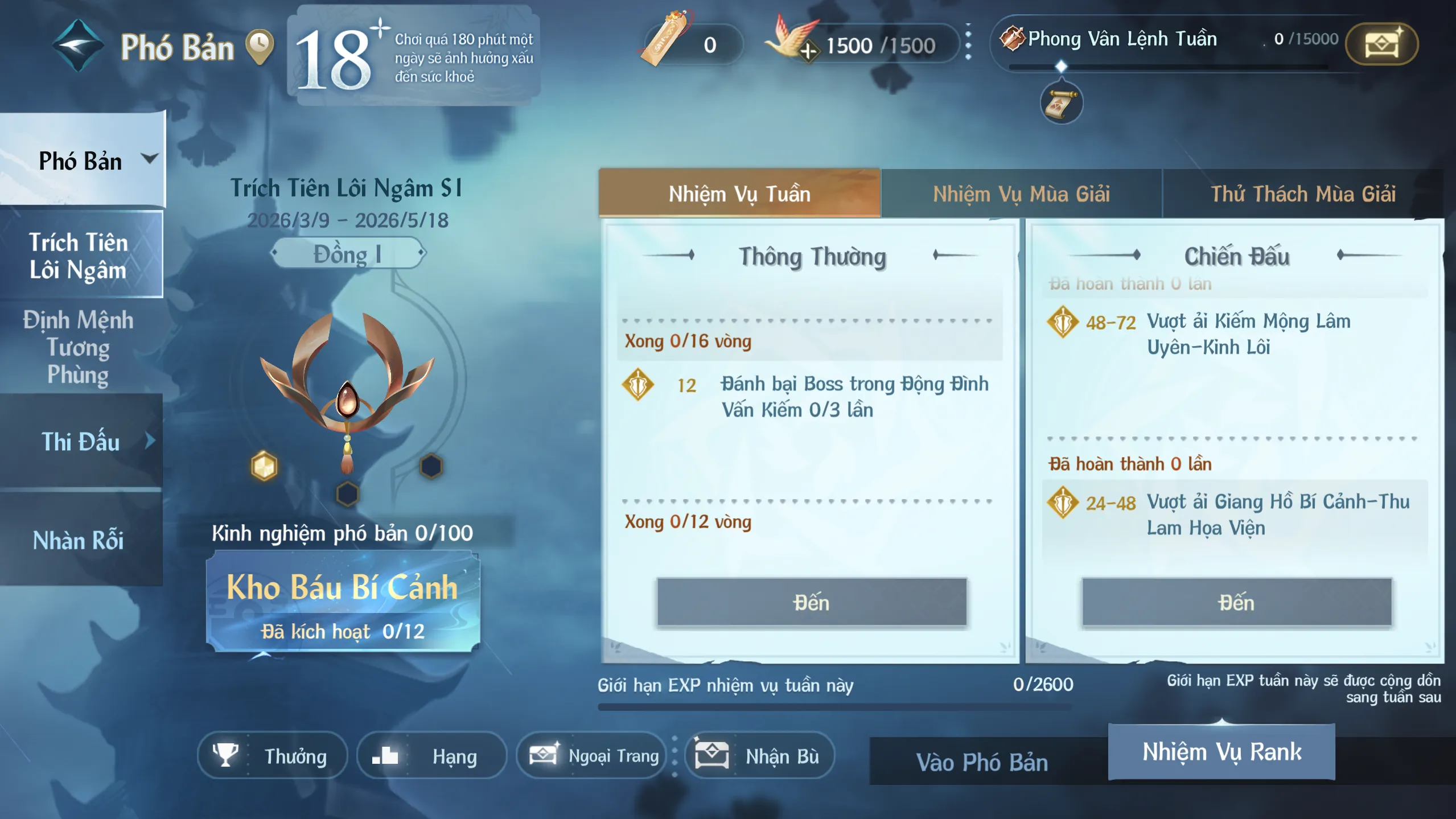 2) Rank Phó Bản thêm nhiệm vụ hàng tuần và nhiệm vụ mùa giải mới.