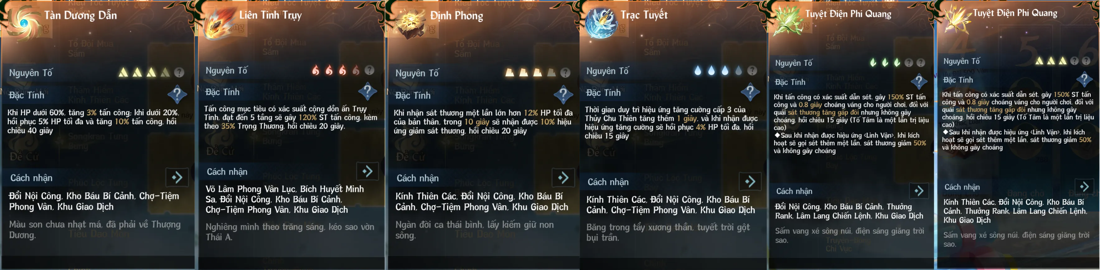 4) Thêm nội công mới: [Tàn Dương Dẫn] 4 Kim 1 nguyên tố ngẫu nhiên, [Liên Tinh Trụy] 4 Hỏa 1 nguyên tố ngẫu nhiên.