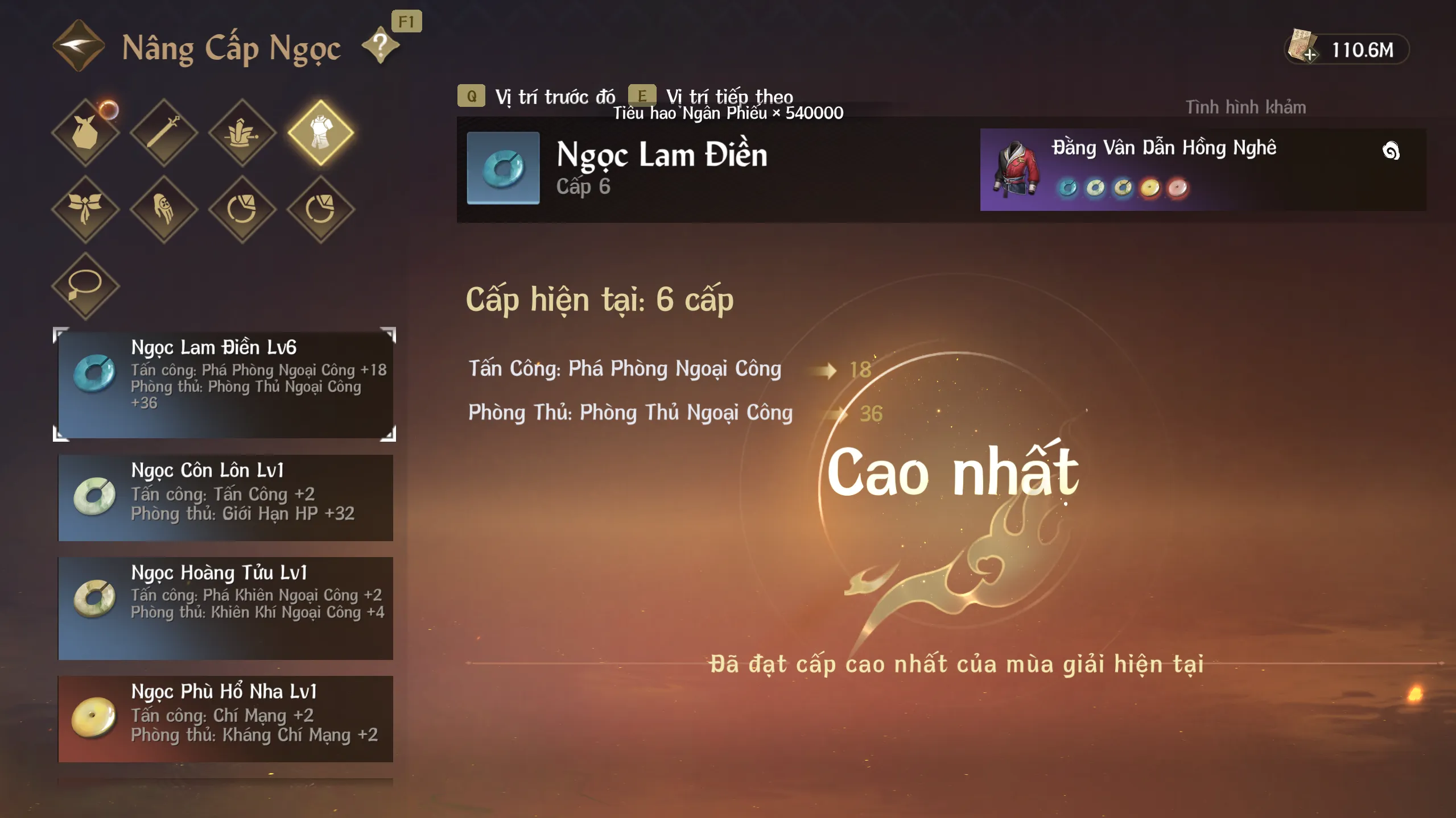 Sau khi cập nhật phiên bản, sẽ dần dần mở khóa Ngọc cấp 6. Tiến độ bồi dưỡng trước đó sẽ được giữ lại.