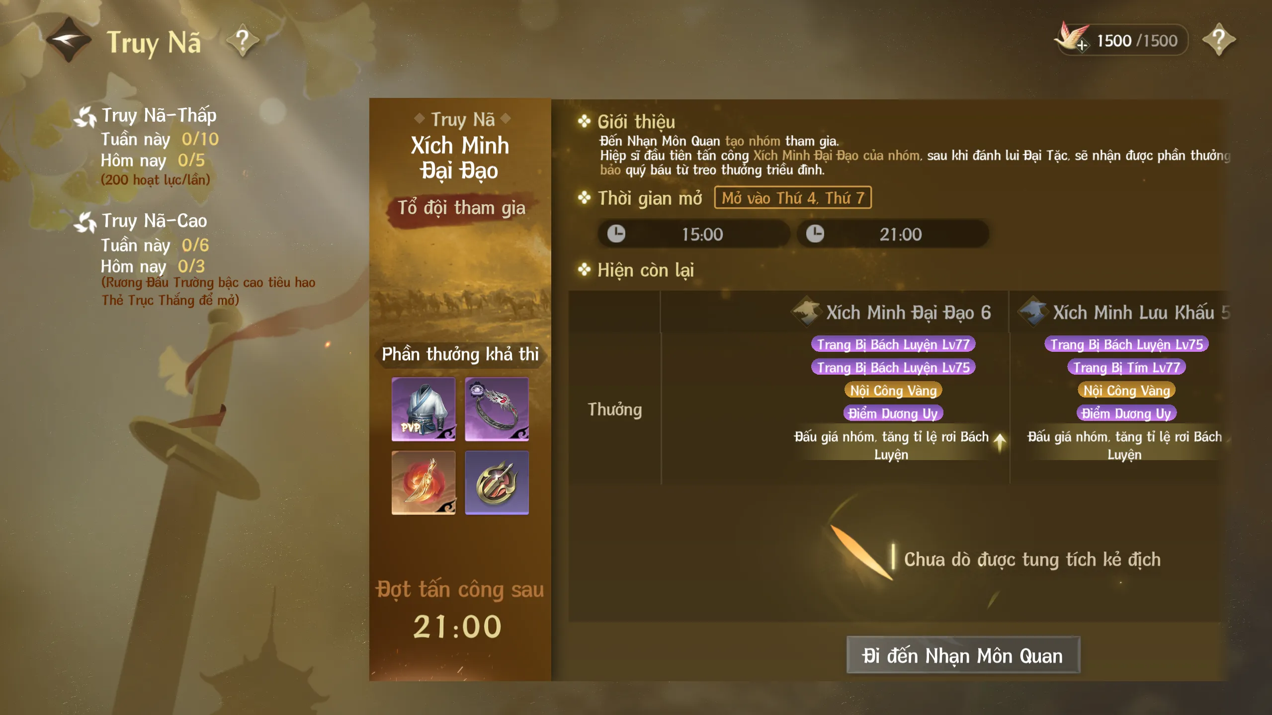 Theo tiến trình mùa giải, hoạt động Truy Nã sẽ dần nâng cấp cấp độ trang bị Bách Luyện hướng PVP. Cấp bậc Truy Nã càng cao, phần thưởng càng tốt.