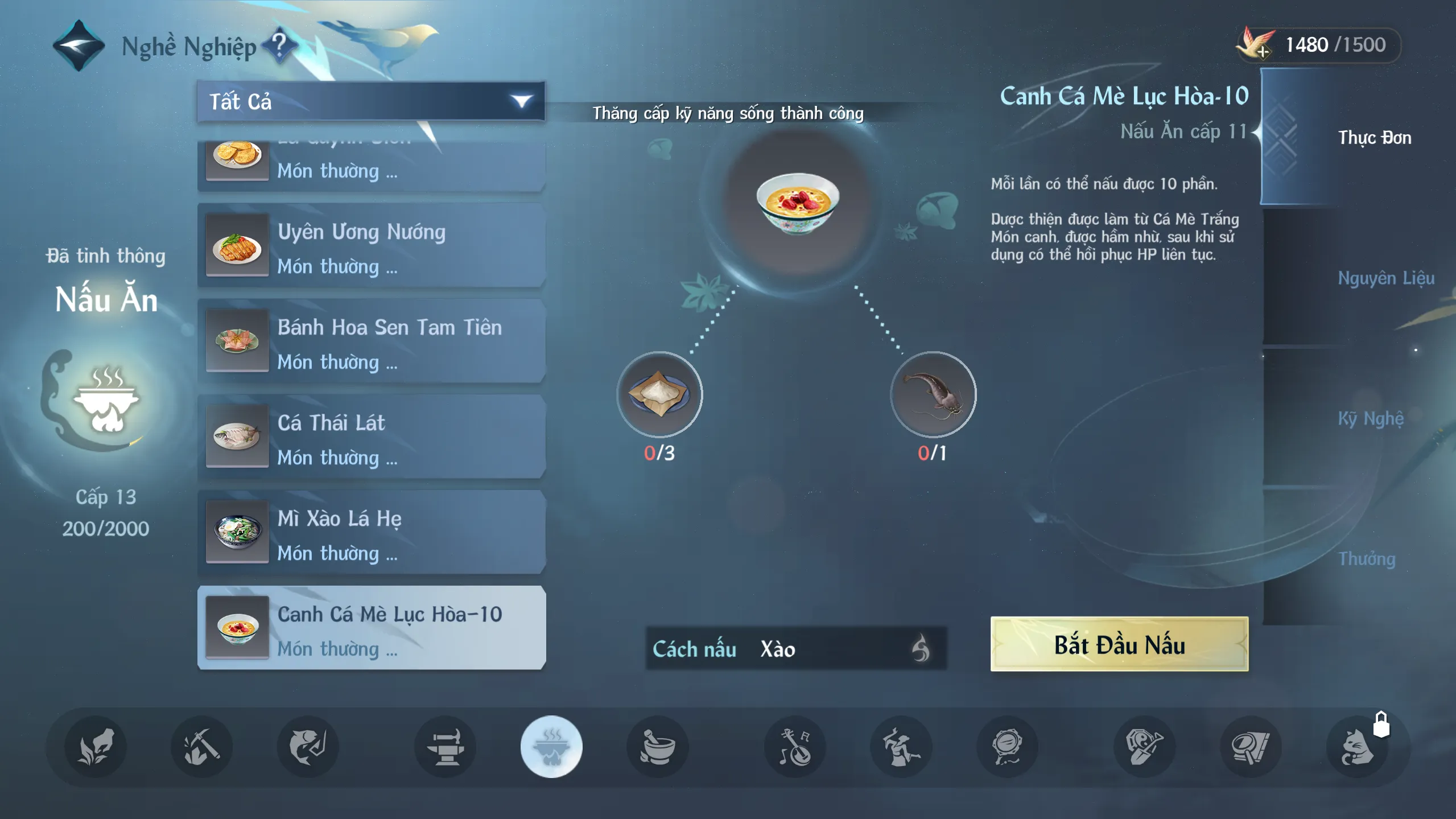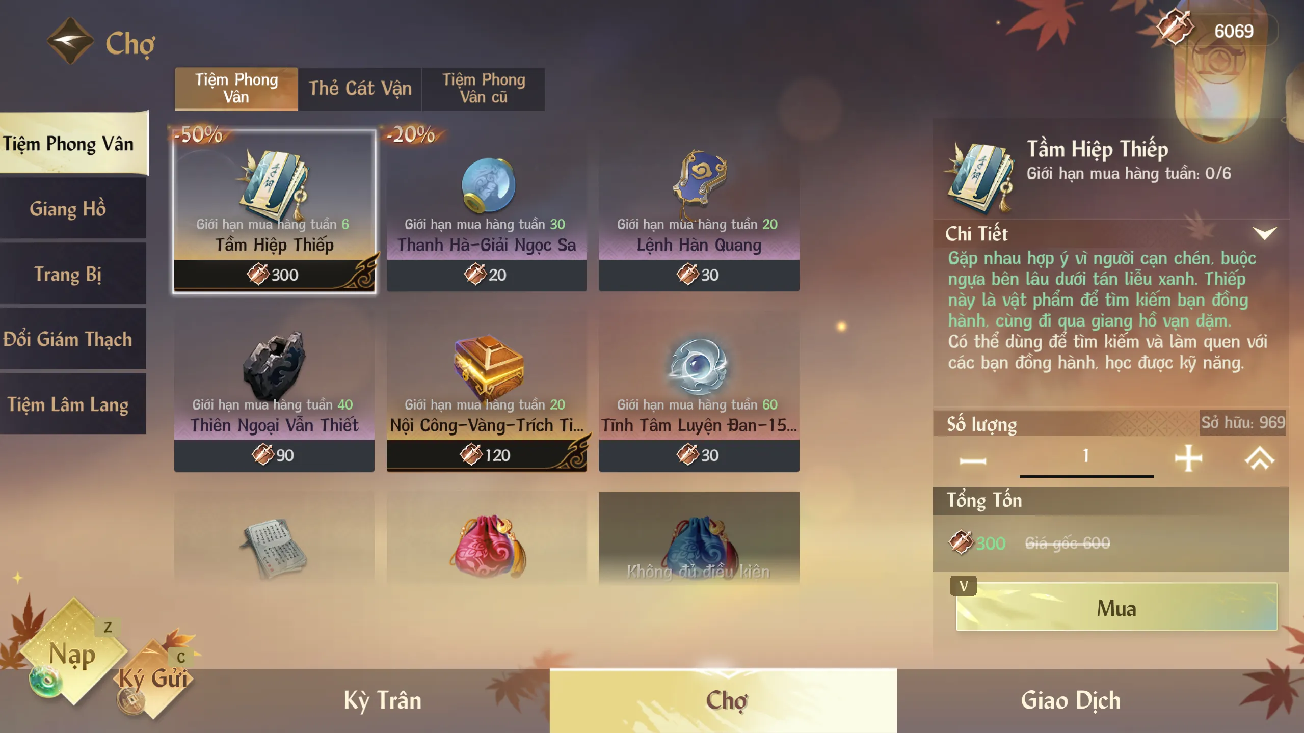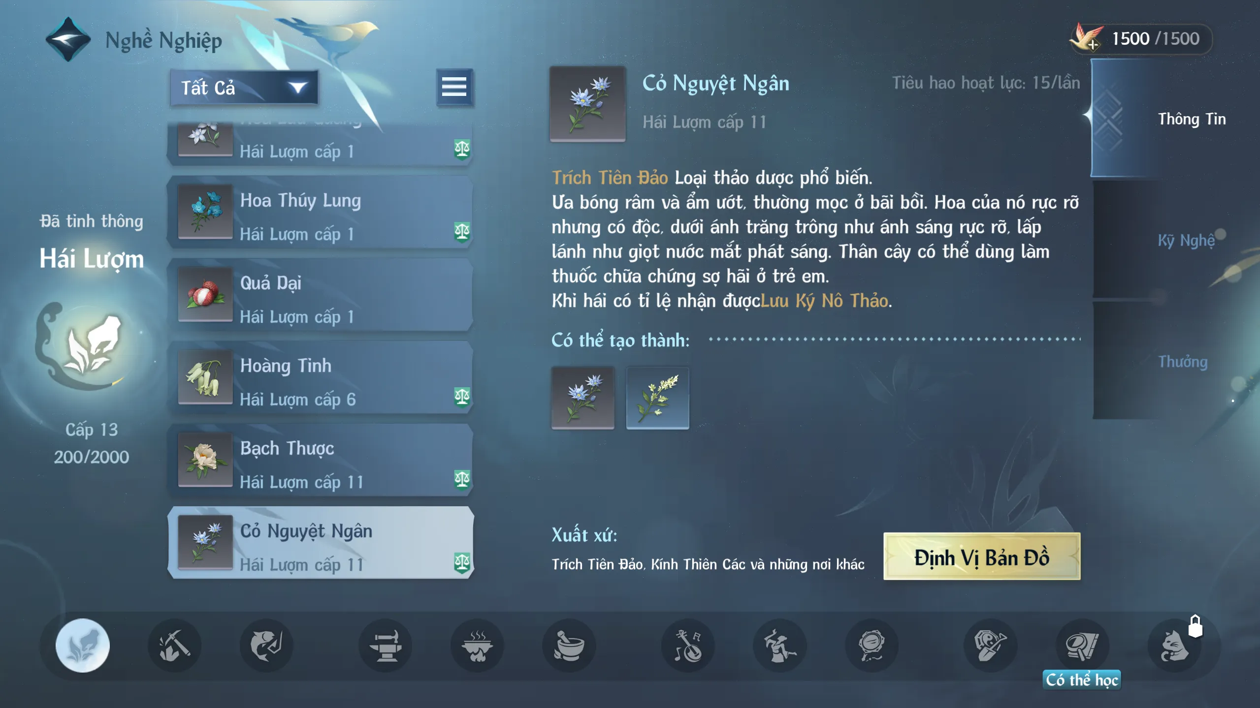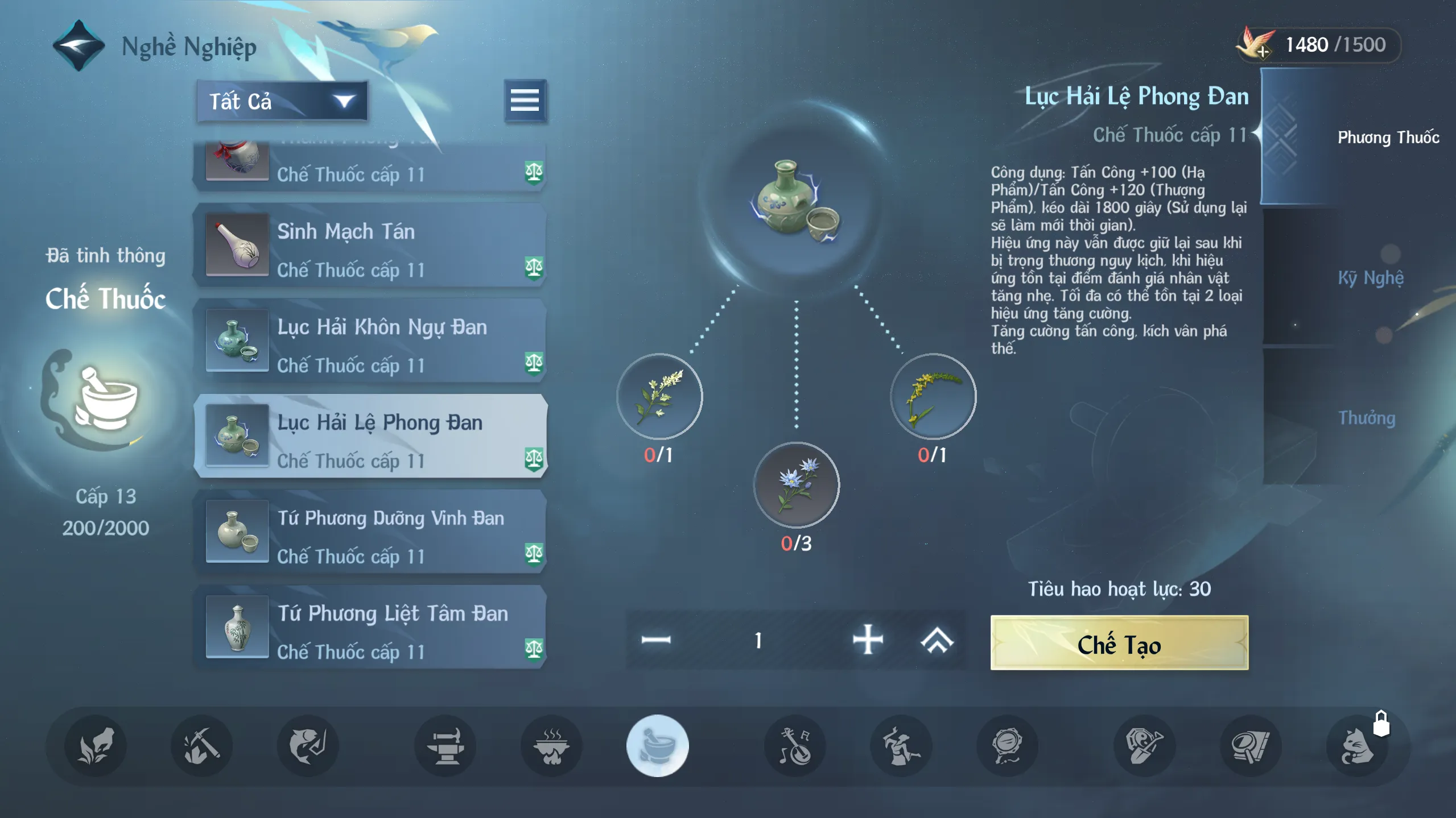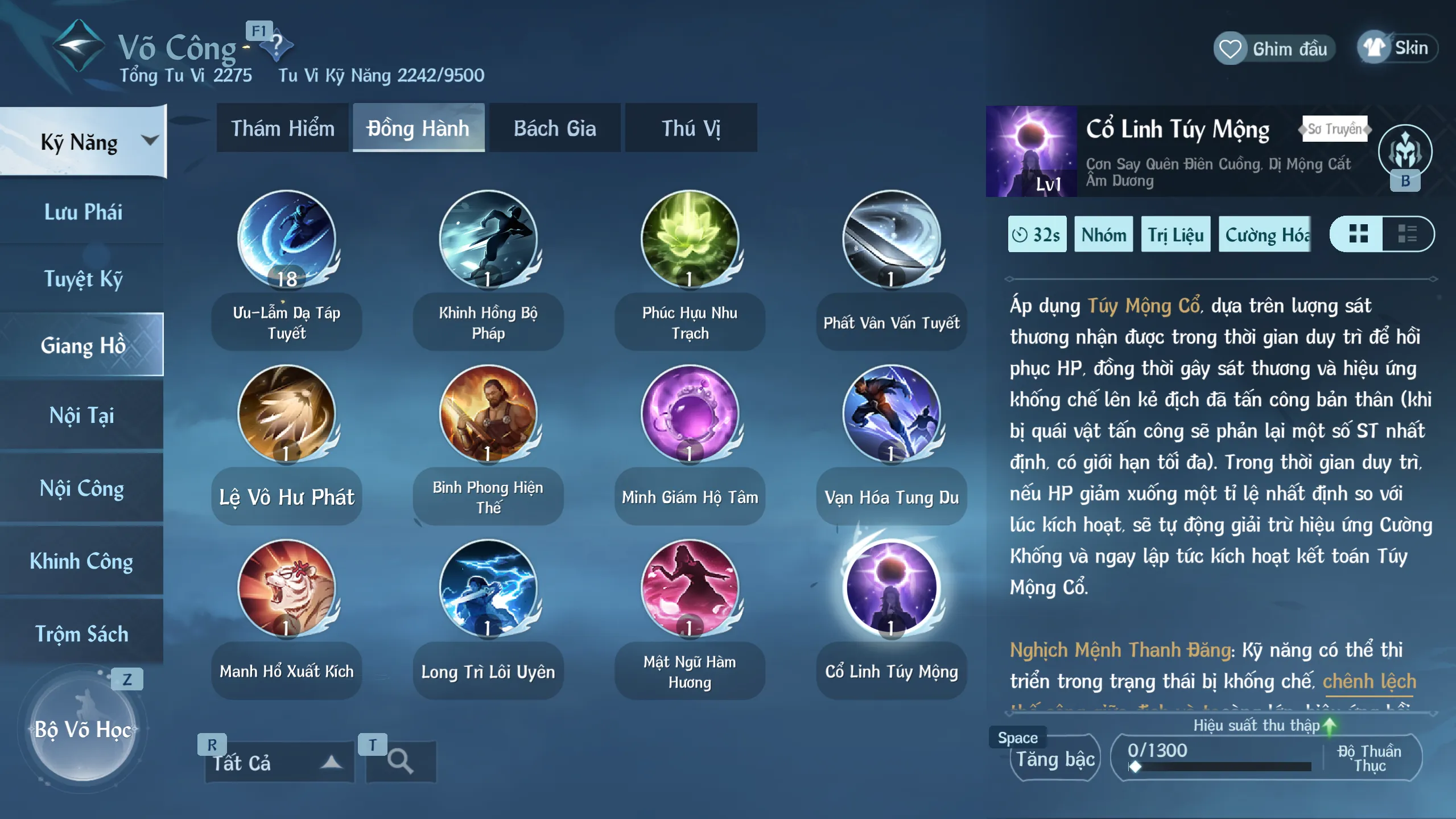 - Tảo Lục Hợp: Dùng kỹ năng để đánh quái sẽ giảm 6 giây thời gian hồi chiêu.