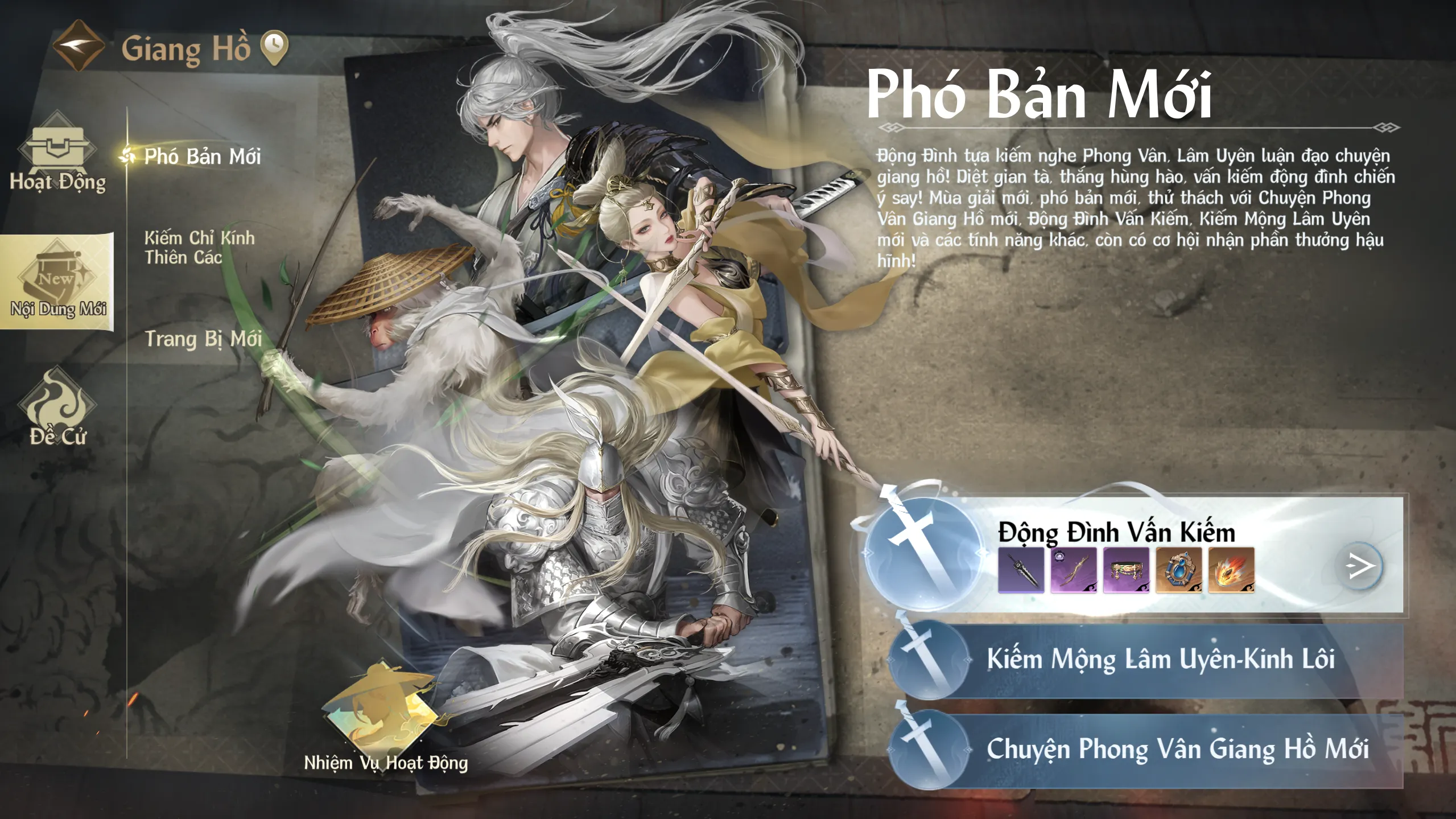 Phó bản nhóm 12 người mới [Kiếm Chỉ Kính Thiên Các], phó bản hàng tuần 6 người mới [Động Đình Vấn Kiếm], chương mới của Kiếm Mộng Lâm Uyên [Kiếm Mộng Lâm Uyên-Kinh Lôi], Chuyện Phong Vân Giang Hồ mới [Phong Tẫn Dương Châu], [Bí Ẩn U Minh Đảo], cùng với cập nhật [Tuyệt Phong Bí Cảnh].