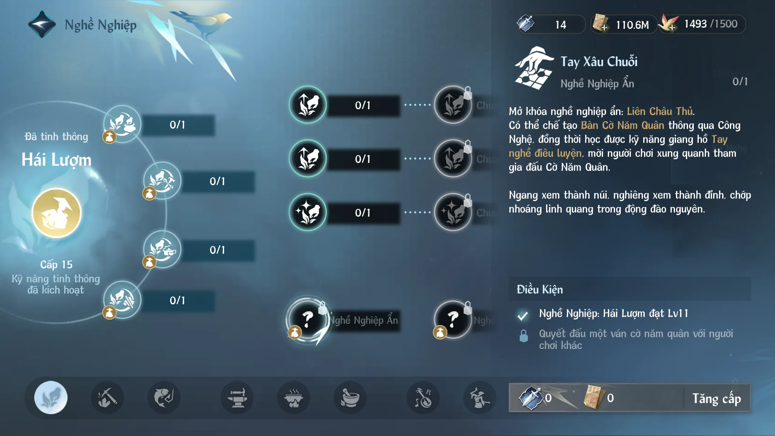 1) Thêm vật phẩm Bàn Cờ Năm Quân, có thể đặt bàn cờ tạm thời tại bản đồ thế giới để đấu cờ năm quân với đồng môn hoặc đồng hành. Sau khi mở khóa nghề nghiệp ẩn "Tay Xâu Chuỗi", có thể học được công thức chế tạo Bàn Cờ Năm Quân.