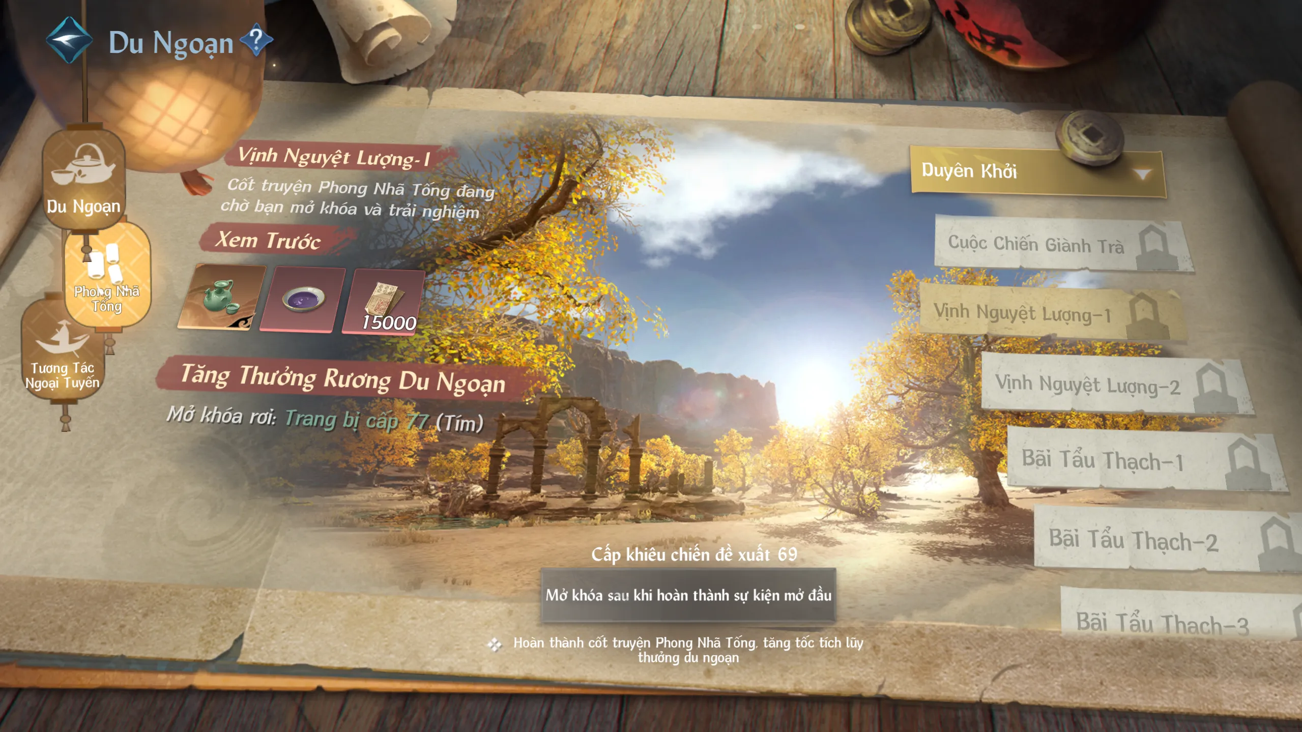 3) Nhiệm vụ Du Ngoạn bổ sung trò Cờ Năm Quân, có thể tự do đấu cờ với Hiệp Duyên và một số Hiệp Hữu.