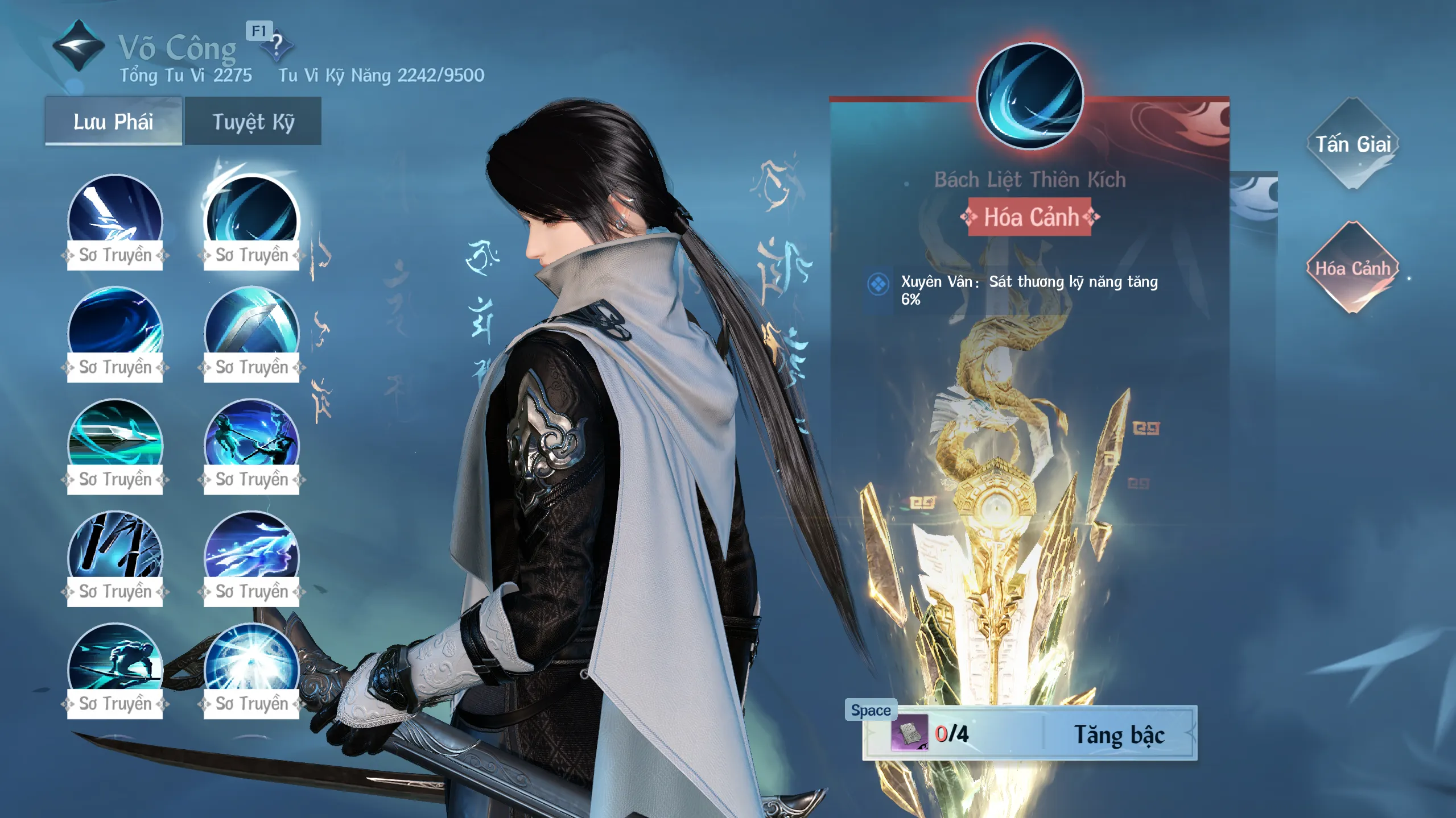 4) Chi tiết hiệu quả Hóa Cảnh và thứ tự mở khóa Hóa Cảnh của các kỹ năng lưu phái có thể xem tại giao diện Võ Công. Thứ tự Hóa Cảnh của kỹ năng ở các phiên bản sau sẽ dựa theo thông báo chính thức tại thời điểm đó.