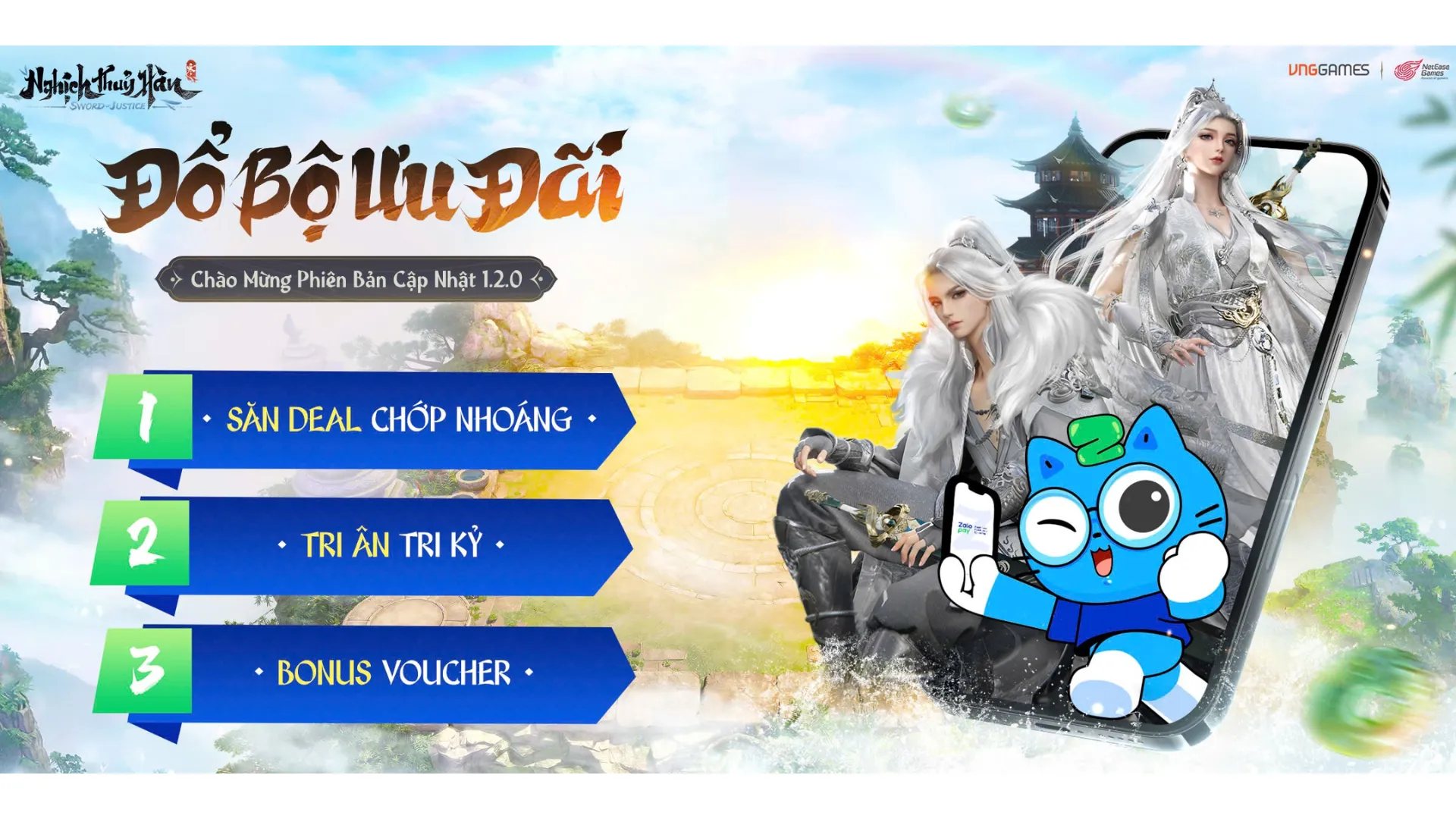 1. Đối với game thủ chưa từng nạp game Nghịch Thủy Hàn bằng Zalopay: Giảm 20.000đ khi nạp game Nghịch Thủy Hàn từ 100.000đ qua cổng nạp shop.vnggames.com bằng phương thức thanh toán Zalopay