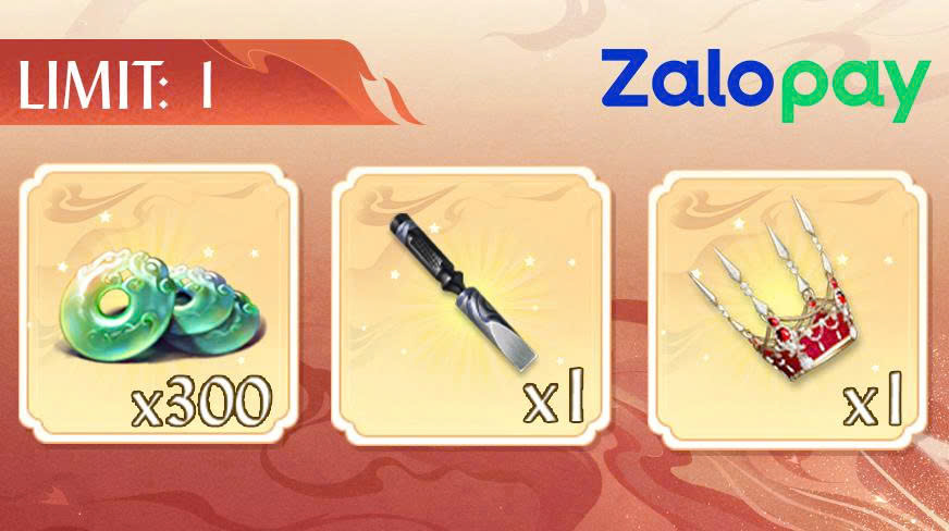 - Mỗi tài khoản game, mỗi tài khoản Zalopay chỉ được hưởng ưu đãi 01 lần trong suốt thời gian diễn ra chương trình.