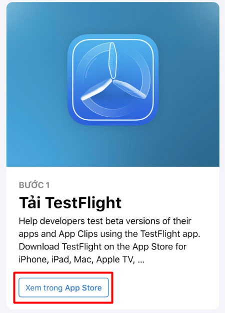- Nếu thiết bị của bạn chưa cài đặt TestFlight, hãy nhấp Xem trong App Store để tải TestFlight.