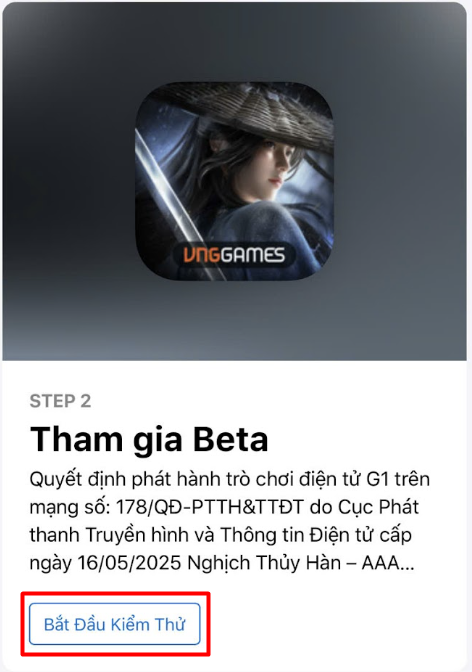 - Nhấp vào Bắt Đầu Kiểm Thử để truy cập vào TestFlight tải game. Dung lượng game khá lớn, tốt nhất nên tải bằng Wi-Fi. Vui lòng kiên nhẫn chờ tải hoàn tất!