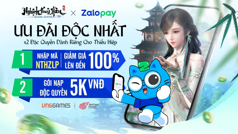 Trước đây khi nạp bằng webshop của Nghịch Thủy Hàn, các Thiếu Hiệp đã được ưu đãi đến 8% so với nạp trực tiếp trong trò chơi. Còn bây giờ, khi nạp tại webshop bằng ZaloPay, các Thiếu Hiệp thậm chí sẽ được nhận thêm ưu đãi đặc biệt đến 100%.