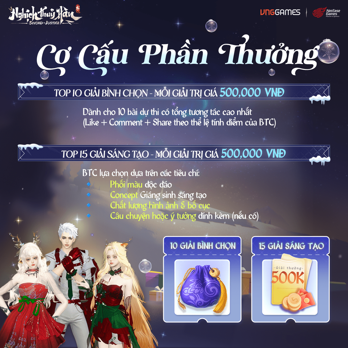 - TOP 10 Giải Bình Chọn: Mỗi giải trị giá 500.000 VNĐ- TOP 15 Giải Sáng Tạo: Mỗi giải trị giá 500.000 VNĐ