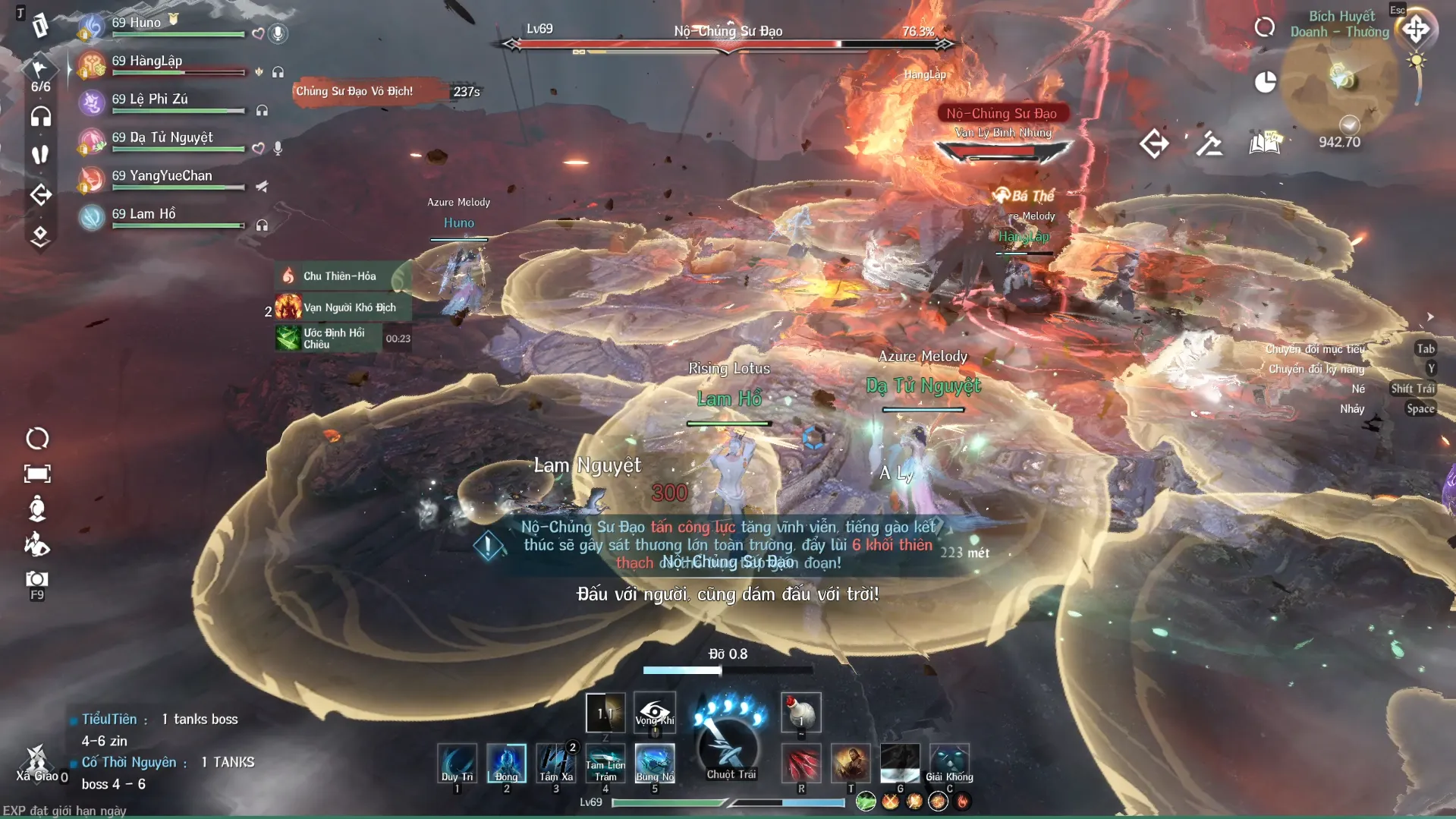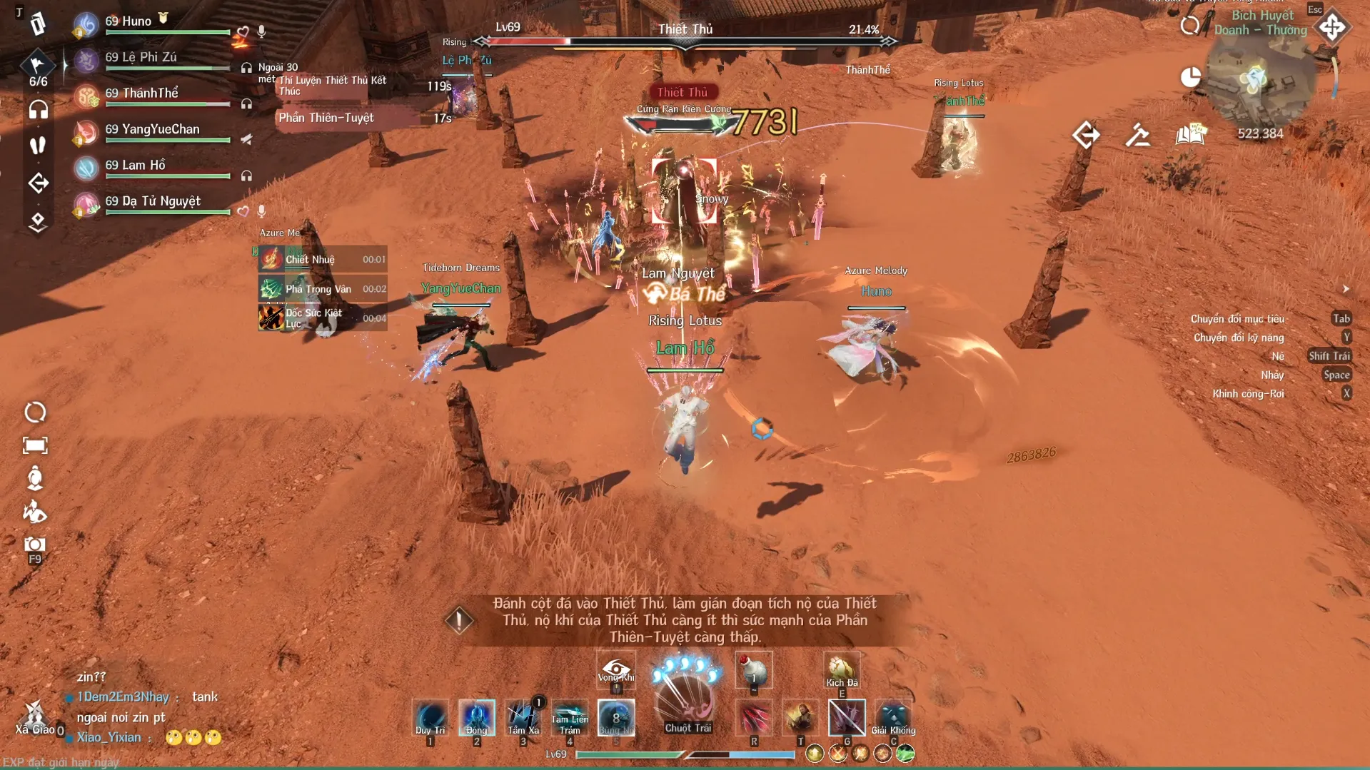 Cách xử lý: cả đội đứng chồng lên nhau để chia sát thương. Có thể dùng kỹ năng giảm sát thương để bảo vệ người bị chọn làm mục tiêu.