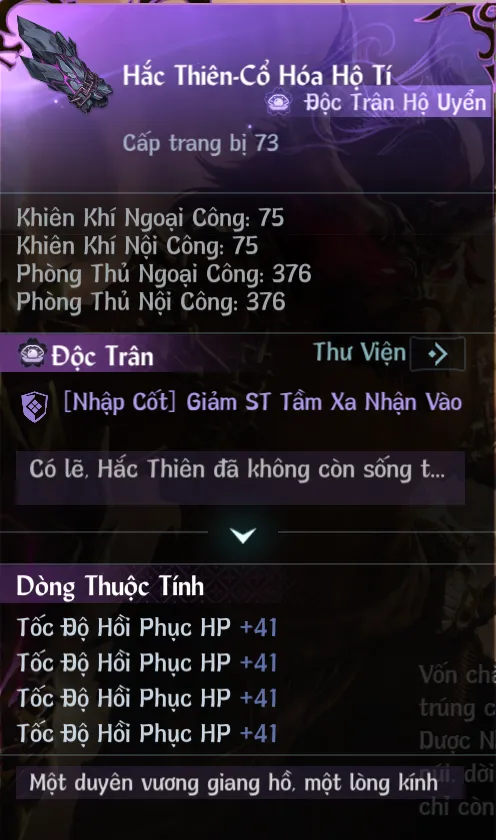 Đánh bại Hắc Thiên Tôn Sứ có thể rơi Độc Trân – Hắc Thiên · Cổ Hóa Hộ Tí (cấp trang bị 73):