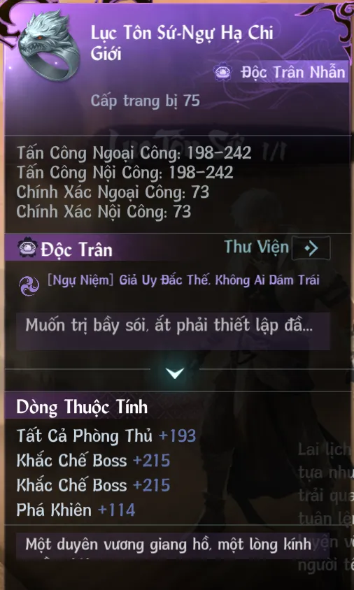 Ngoài ra, trang bị này còn mở khóa một nhánh kỳ ngộ truyền văn. Nếu bạn sở hữu món Độc Trân này, hãy nhớ theo dấu kỳ ngộ để khám phá câu chuyện phía sau nó nhé!