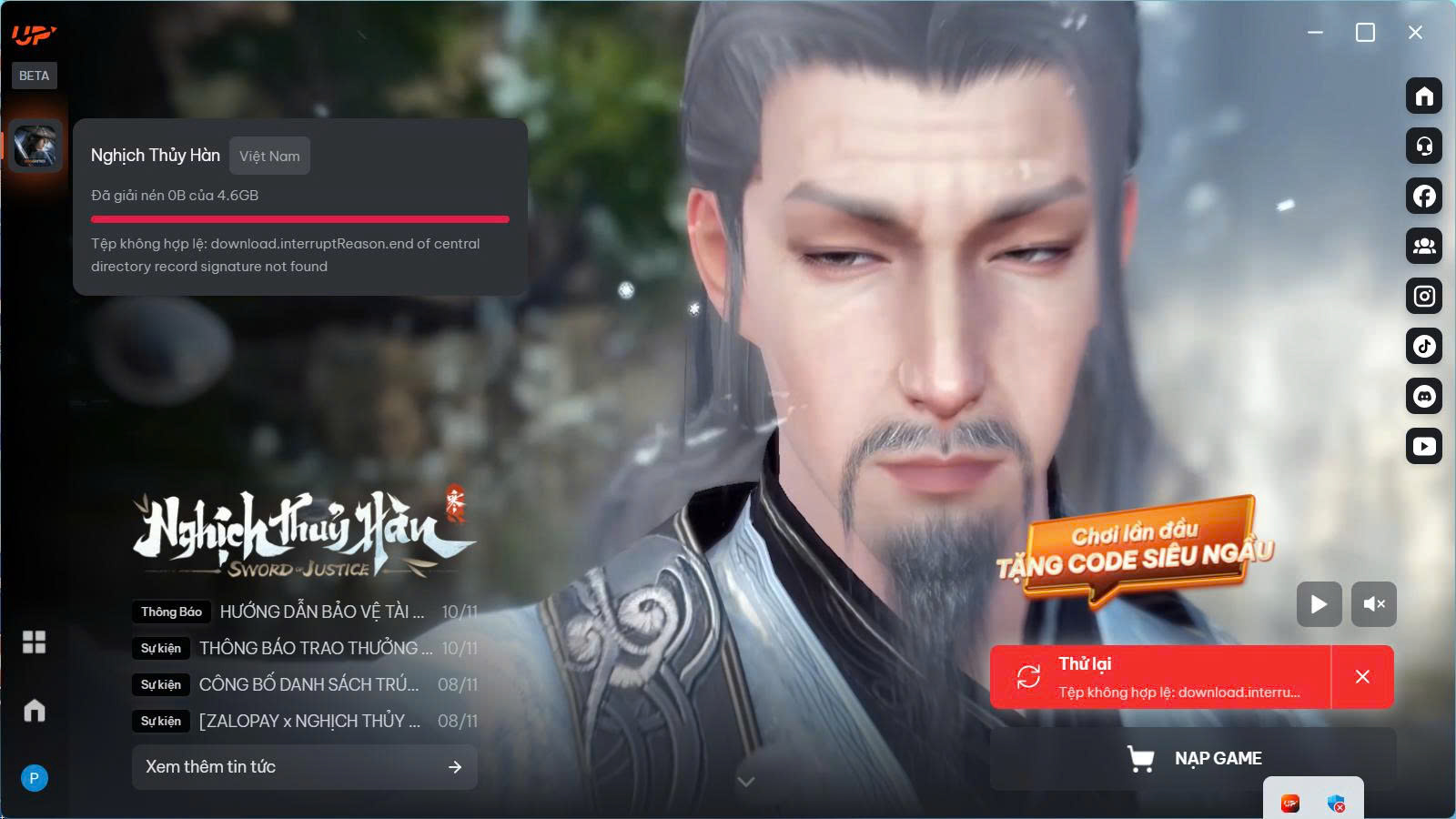 Lỗi 2: Lỗi “Thử Lại” Trong Quá Trình Tải Game Trên Level Up