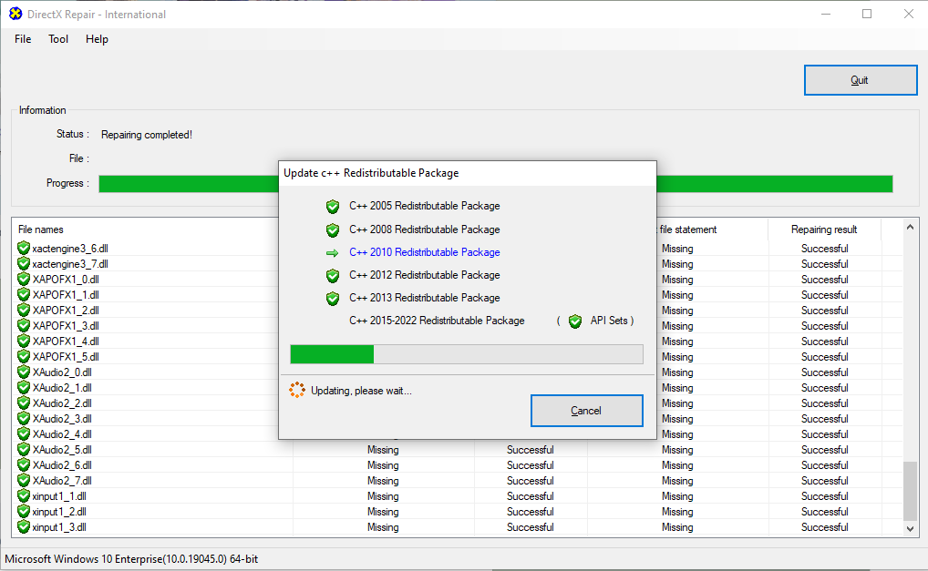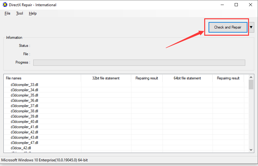 Bước 3: Chọn Check and Repair tại giao diện cửa sổ DirectX Repair và chờ trong vài phút để hệ thống C++ được update hoàn tất