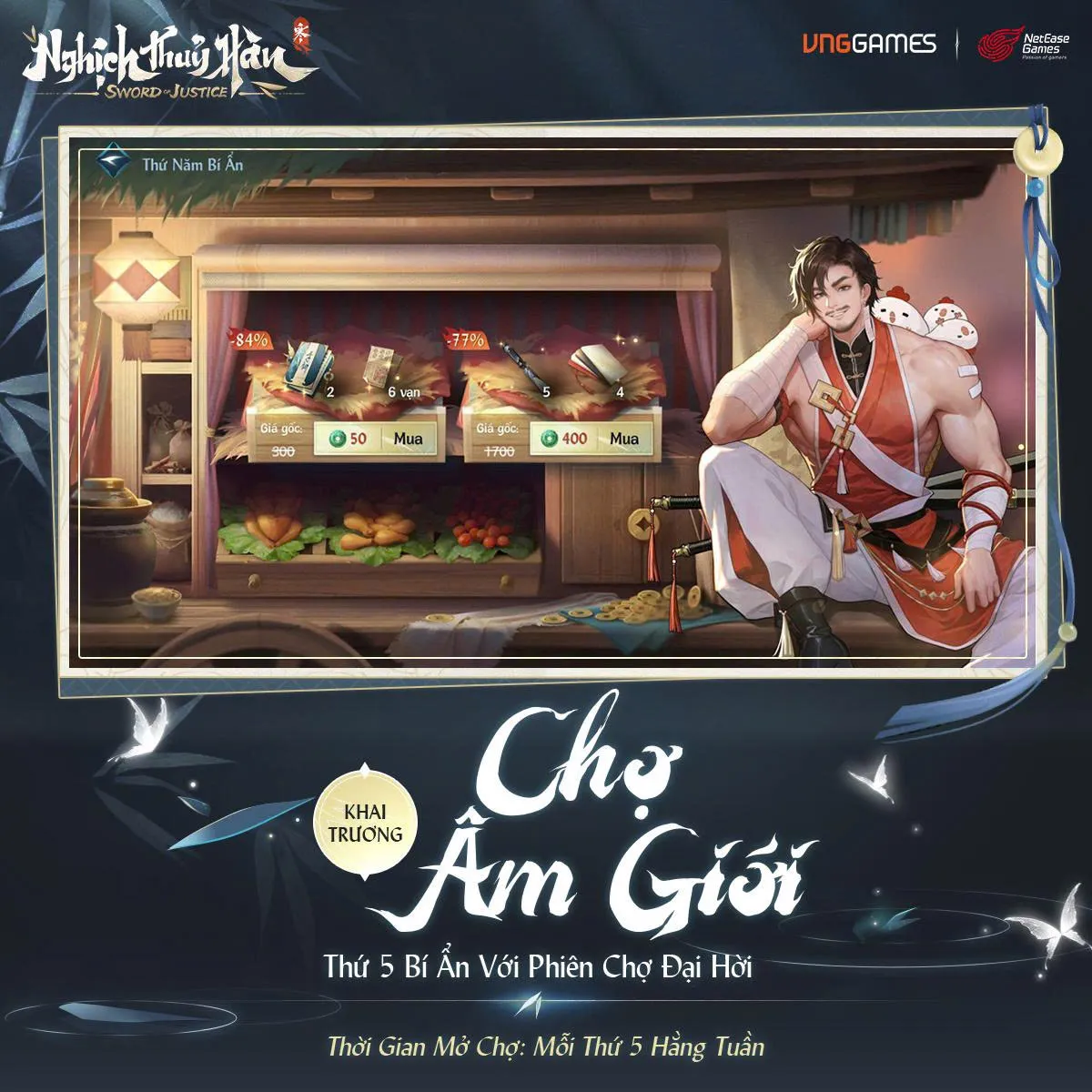 Chợ Âm Giới khai trương trong tính năng Du ngoạn, các Thiếu Hiệp mau ghé sạp, dạo một vòng chợ ngay nhé! Phúc lợi hiếm có giảm giá đến hơn 80%, nhanh tay đón lộc, hữu duyên nhận phúc!