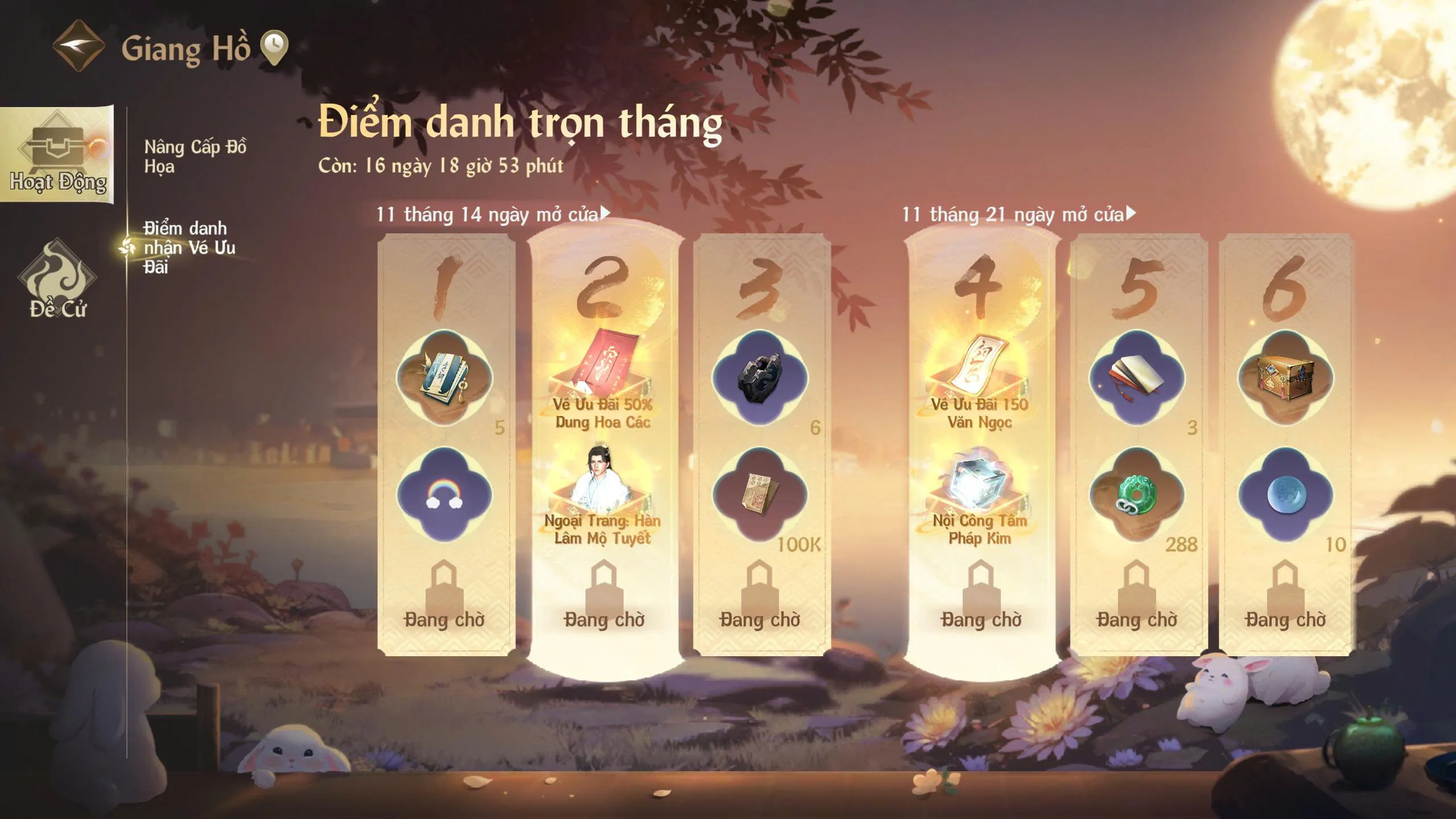 Điểm danh trọn tháng là hoạt động dành riêng cho những thiếu hiệp muốn quay lại giang hồ nhưng chưa biết bắt đầu từ đâu. Không cần đánh boss, không cần leo phó bản – chỉ cần ghé vào game vài giây mỗi ngày là hành trang của bạn đã đầy lên từng chút một.