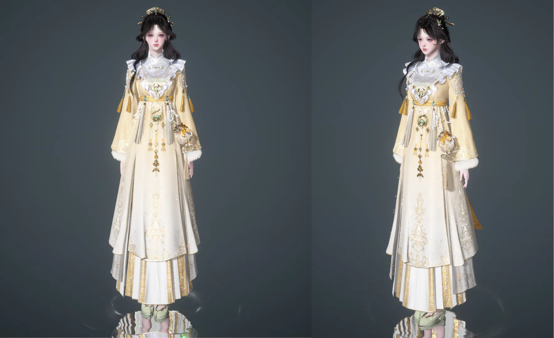 Ngoại trang Hàn Lâm Mộ Tuyết / Nga Nhung Sơ Tuyết – hai bộ trang phục mang khí chất thanh lệ, khoác lên là biến ngay thành công tử/tiểu thư như bước ra từ tuyết sương. Chỉ có thể nói một câu: điểm danh mà cũng đẹp được như vậy thì ai lại bỏ?