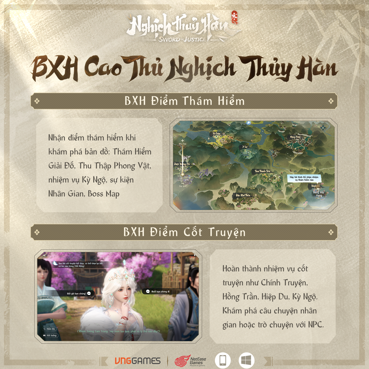 BXH Điểm Cốt Truyện: Hoàn thành nhiệm vụ cốt truyện như chính truyện, hồng trần, hiệp du, kỳ ngộ hay đơn giản là khám phá câu chuyện nhân gian, trò chuyện cùng NPC