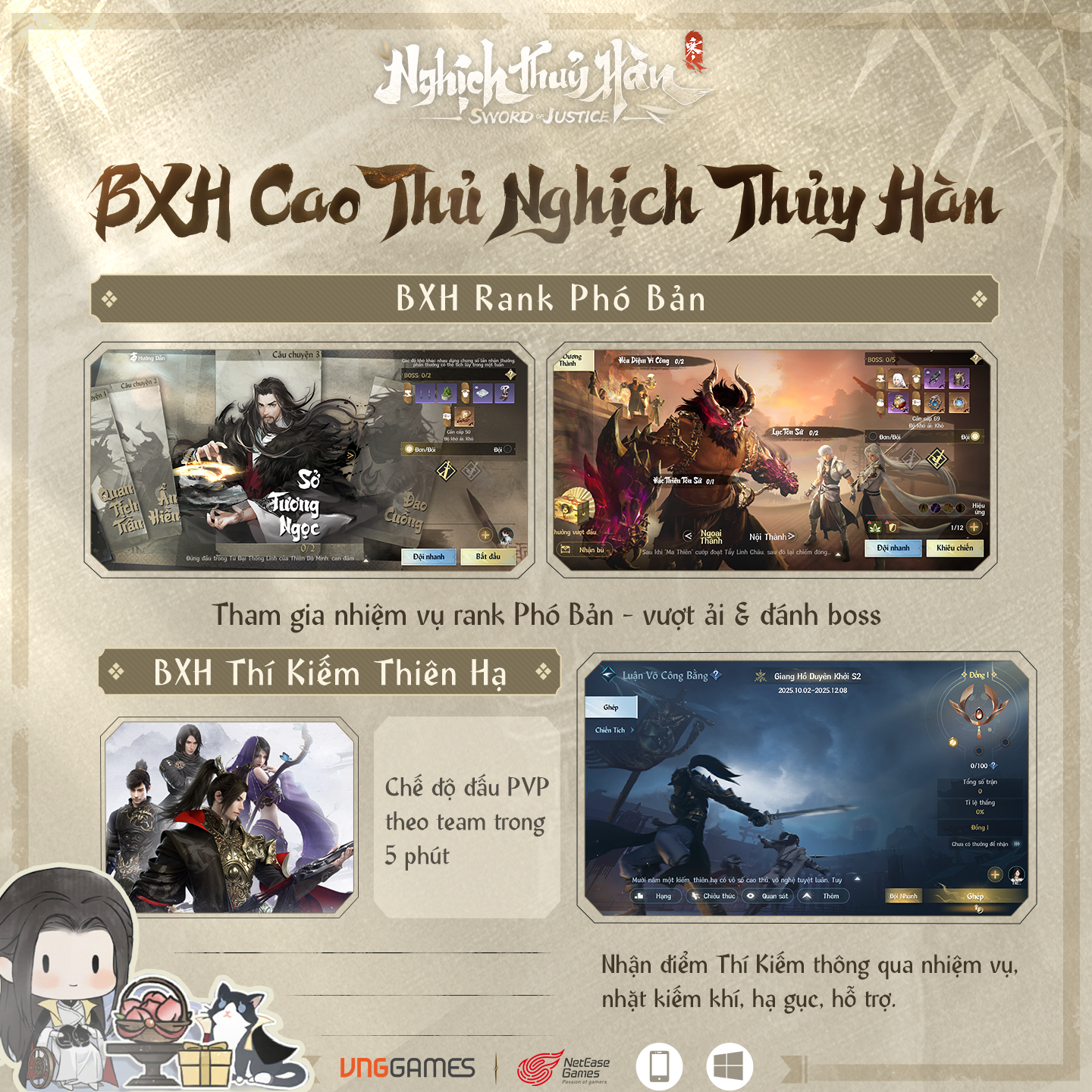 BXH Thí Kiếm Thiên Hạ: Chế độ đấu PVP theo team trong 5 phút, đạt điểm Thí Kiếm cao để dành chiến thắng