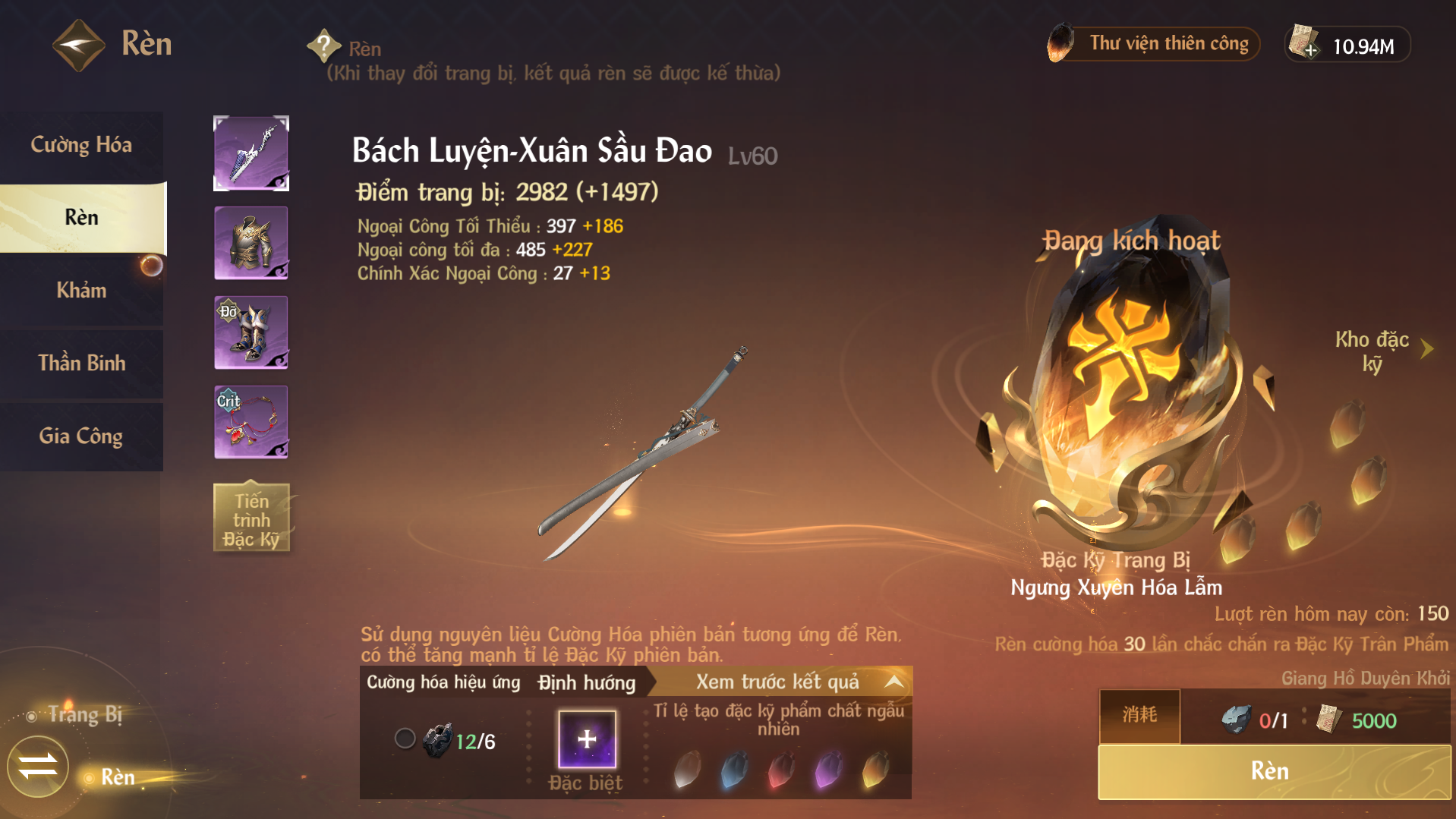 Cuối cùng, chúng tôi cũng chuẩn bị cho những người chơi không thiếu tiền một không gian để theo đuổi thuộc tính hoàn hảo với hiệu suất cực kỳ thấp, đó chính là chế tạo đặc kỹ trang bị và tu luyện nội công.