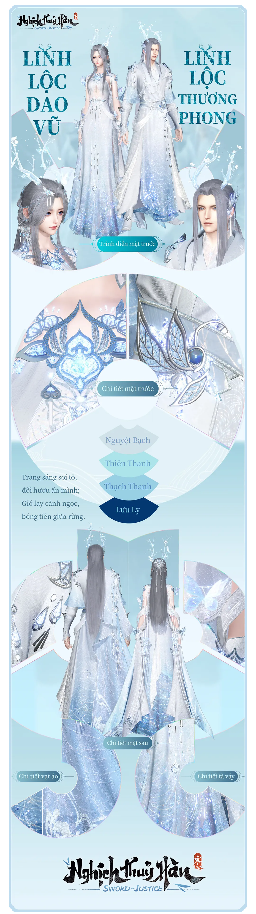 Từ truyền thuyết ấy, ngoại trang Linh Lộc Dao Vũ / Linh Lộc Thương Phong ra đời — mang theo vẻ đẹp thuần khiết của núi rừng, hòa cùng ánh trăng và linh khí thiên địa.