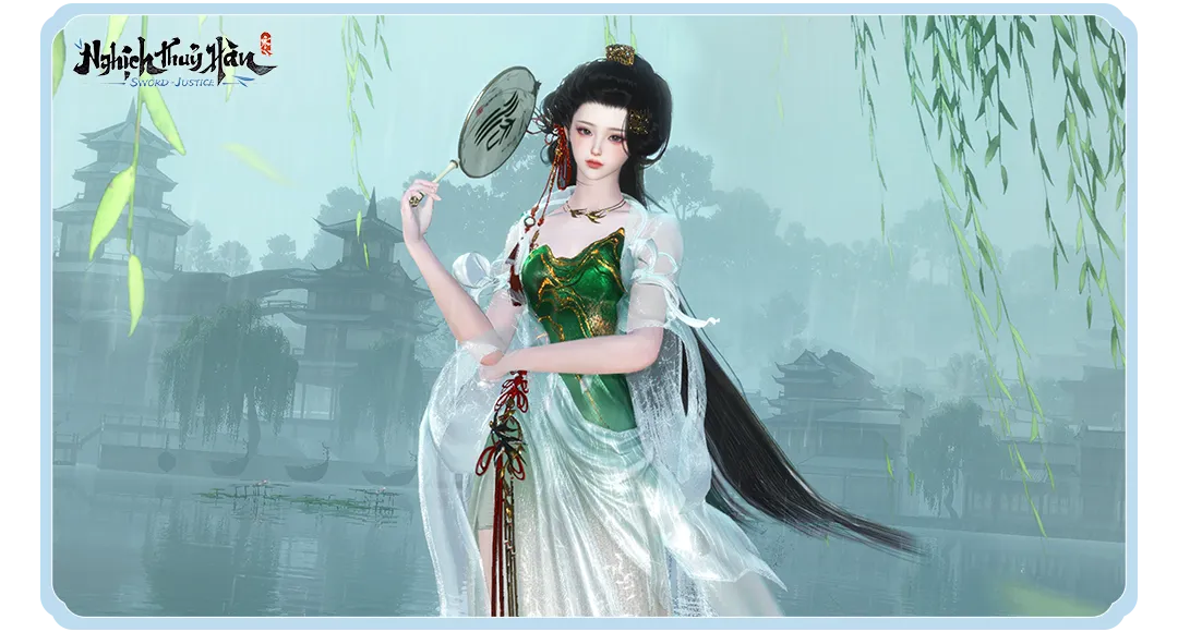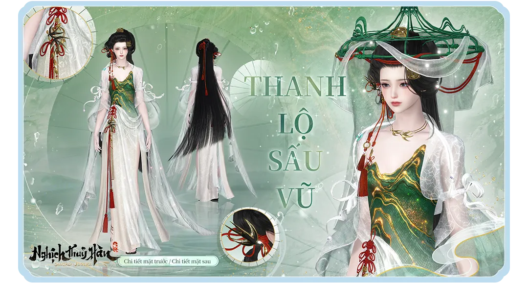 Lấy cảm hứng từ những buổi dạo xuân thưởng trà bên hồ, ngoại trang mới Thanh Lộ Sấu Vũ mang đến vẻ đẹp thanh nhã, nhẹ nhàng như hơi sương đầu mùa.