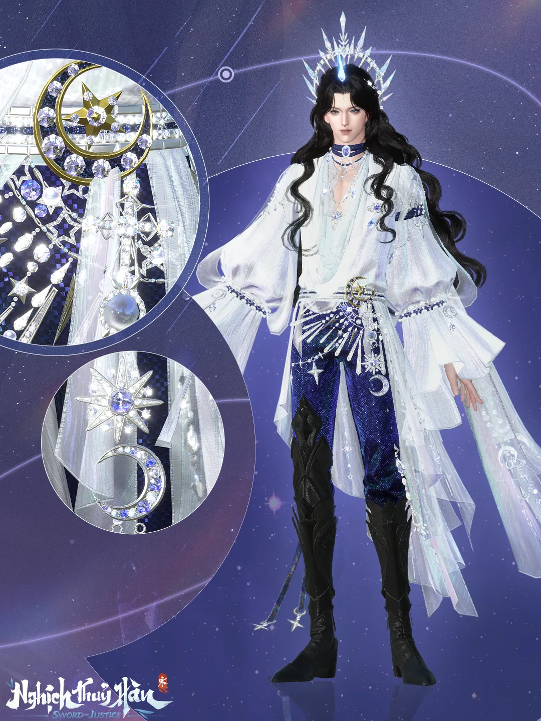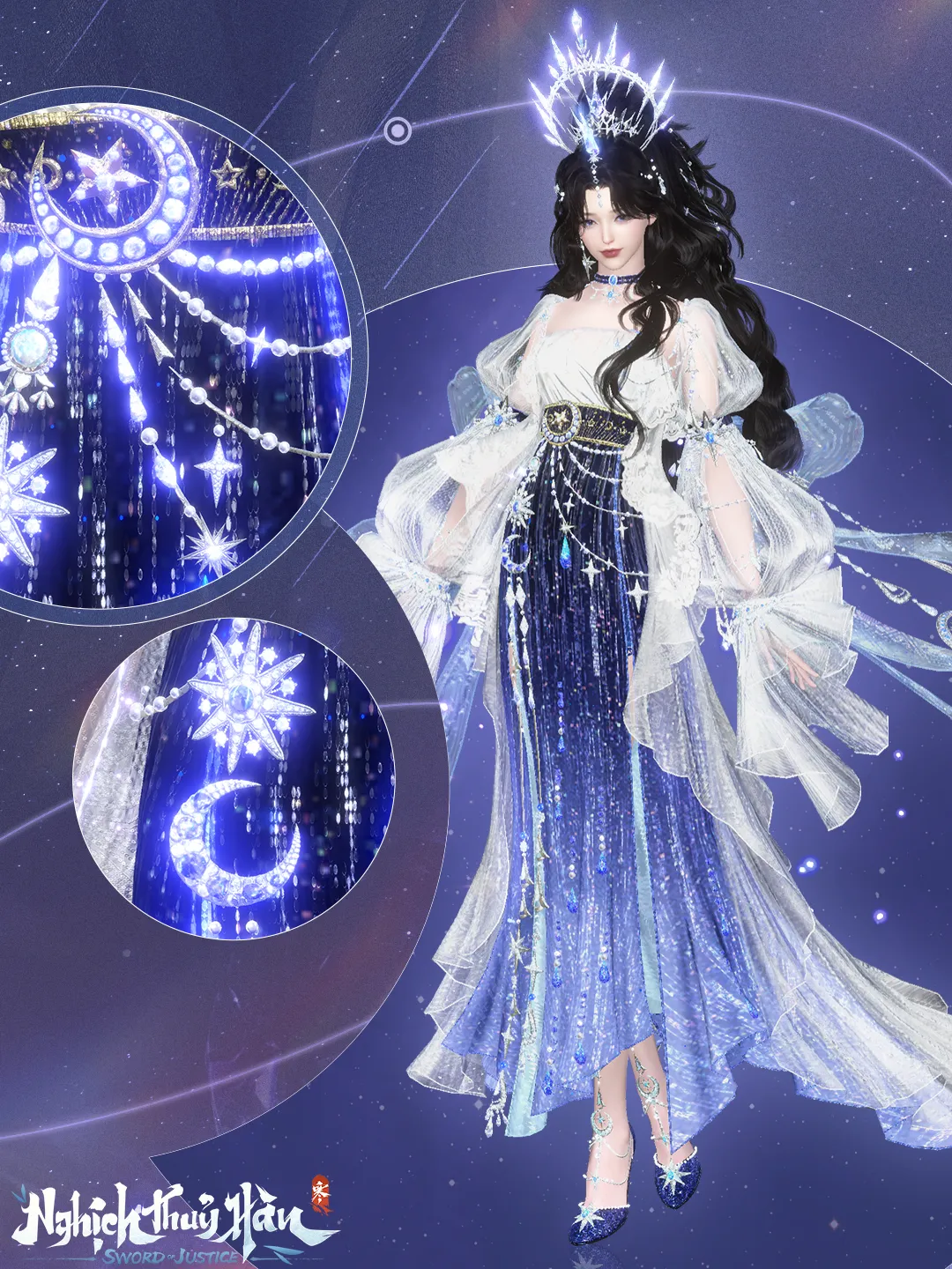 Mỗi bước chân đều ánh lên ánh sao mờ ảo, mỗi cử động đều mang theo hơi thở của vũ trụ.