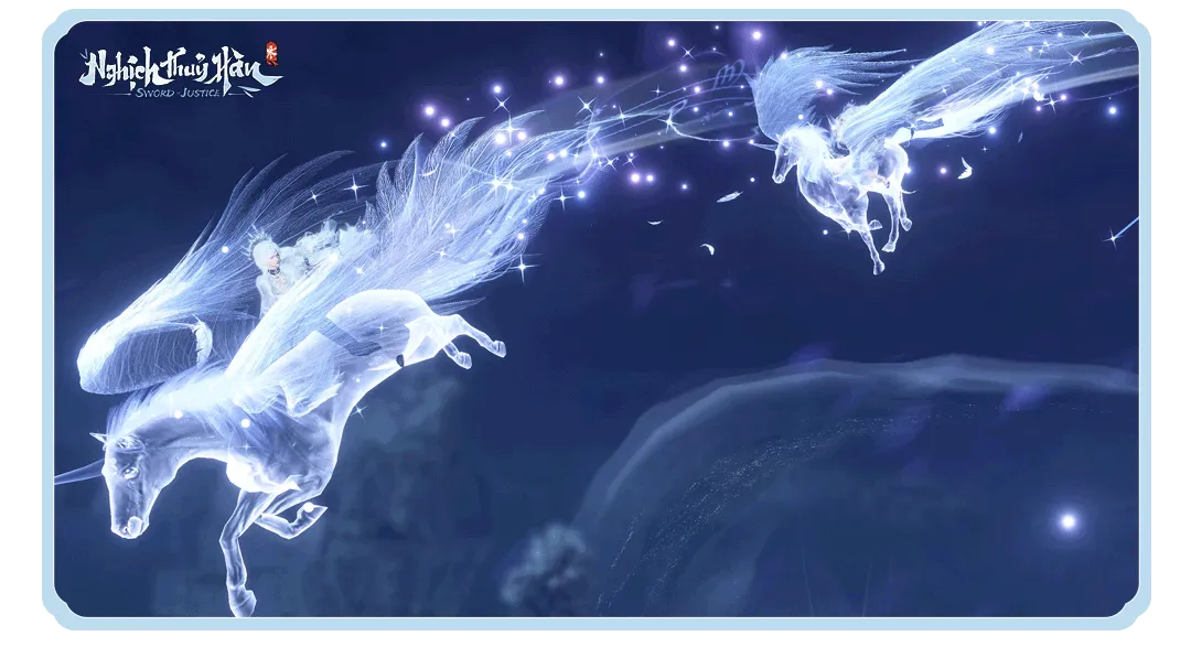 Khi tiếng còi khẽ vang giữa không trung, Thiên Mã được triệu hồi, lặng lẽ đáp xuống như một vì sao rơi từ thiên giới.