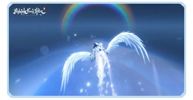 Khi ánh sáng hội tụ, đôi cánh mở ra giữa không trung,