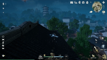 Điểm thứ hai là trong khinh công đã thêm yếu tố “Thừa Ảnh Kiếm”, khi bay trên cao, sẽ mang lại cho bạn hiệu ứng “Thời Gian Viên Đạn” (bullet time), có thể lơ lửng khóa mục tiêu. Một khi khóa trúng, nhân kiếm hợp nhất, thực hiện dịch chuyển tức thời, trong nháy mắt lao đến mục tiêu, quả thực là trợ thủ thượng hạng cho việc khám phá thế giới mở.