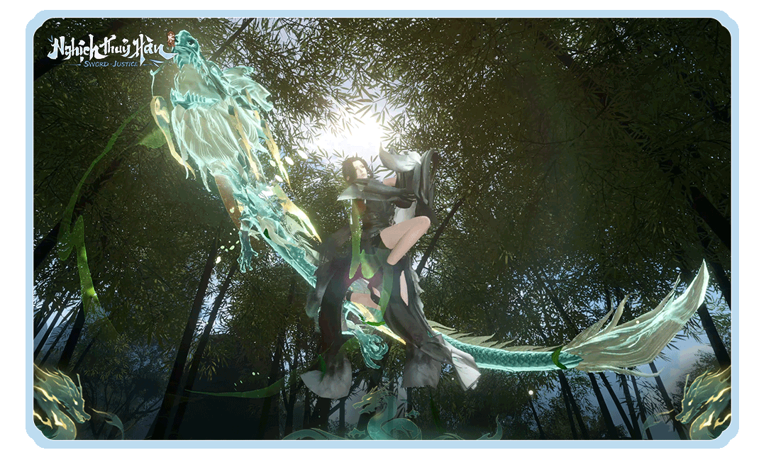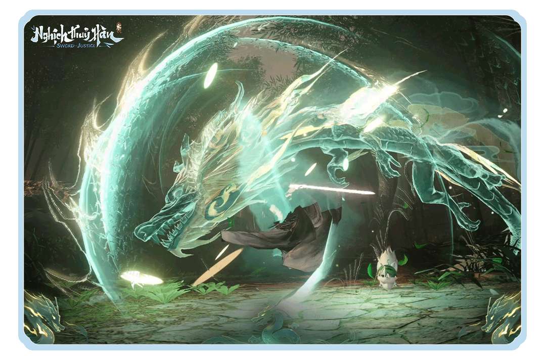 Thần thú Thanh Long xuất hiện đầu tiên, do thần lực quá mạnh mẽ nên không thể hiện thân trực tiếp xuống trần gian, Thanh Long sẽ phụ thân vào Tuyệt Kỹ mạnh mẽ, thể hiện uy thế của thần thú.