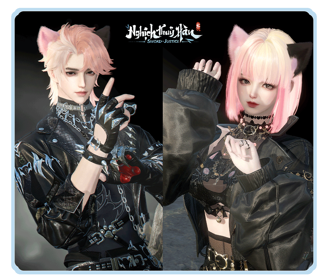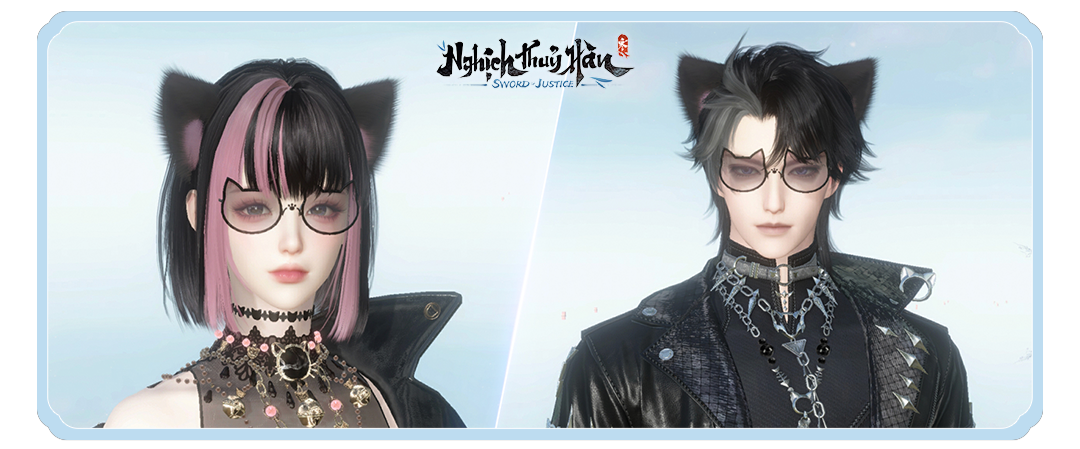 Giữa tóc bồng nhẹ ló ra đôi tai mèo đen mềm mại lanh lợi, vô cùng đáng yêu; còn cặp kính hình đầu mèo màu hồng nhạt càng tăng khí chất thời thượng. Trang bị hai món phụ kiện mới Huyền Miêu - Tai và Huyền Miêu - Kính là có thể hóa thân thành chú mèo thời trang nhất hệ Ngân Hà!