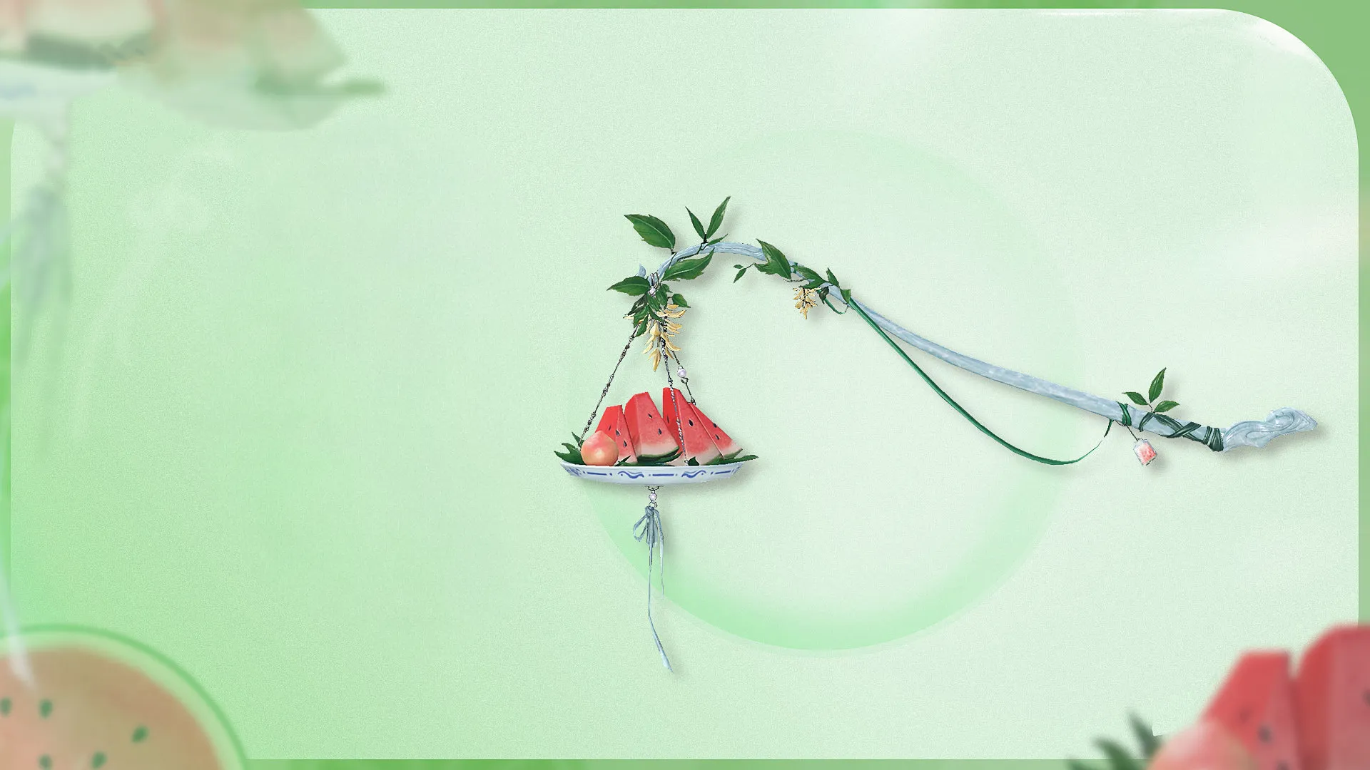 Đèn của Cửu Linh gọi là Gánh Dưa Hàng Rong, cán đèn hóa thành băng tuyết, lồng đèn bày một miếng dưa hấu, ở bất kỳ đâu cũng có dưa hấu ướp lạnh để ăn. Quả thật giống như mang theo một thế giới băng tuyết thu nhỏ vậy! Tiểu Hàn mạnh mẽ đề nghị Cửu Linh và Tố Vấn cùng nhau mang bộ vũ khí trái cây này debut theo nhóm!