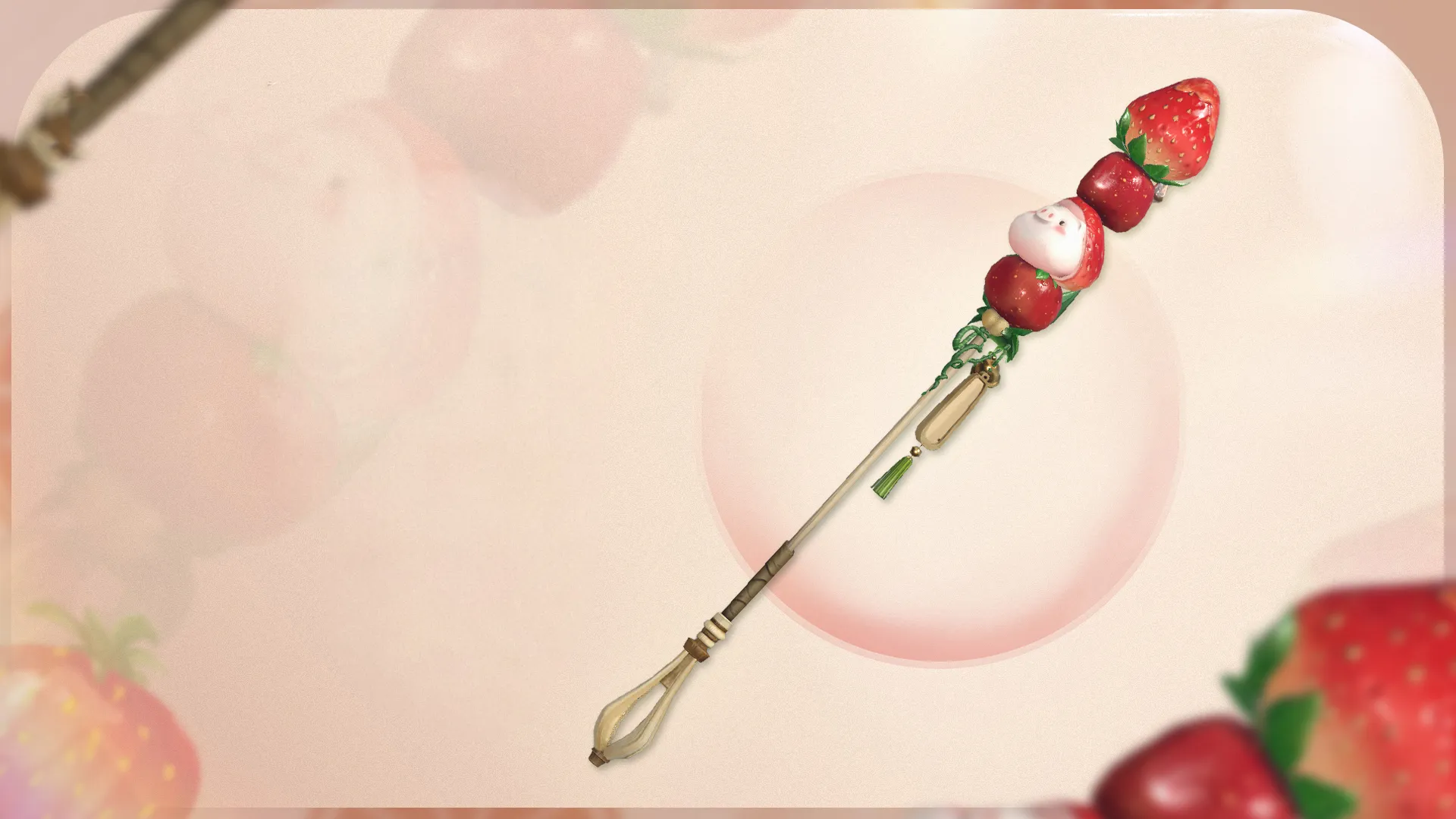 Thương của Huyết Hà gọi là Xiên Dâu Bọc Đường, chính là xiên kẹo hồ lô có thể khiến toàn bộ đám trẻ con thèm khóc nức nở! Dâu tây và sơn tra xếp hàng ngay ngắn, từng quả từng quả được phủ lớp đường trong veo. Ấy khoan… sao trong đó lại lẫn cả một chú heo con vậy trời?!