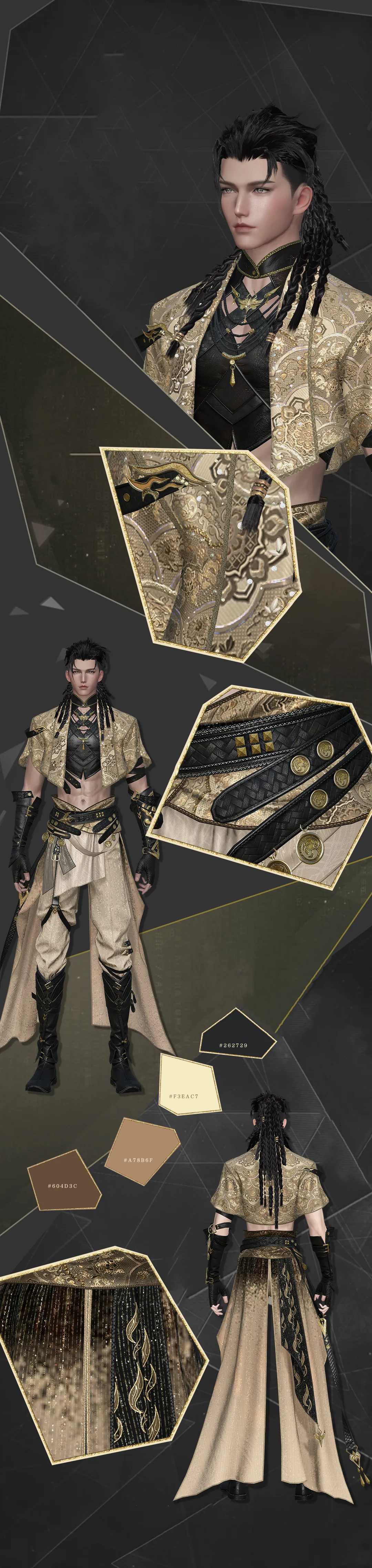 Tóc nam lấy cảm hứng từ kiểu tóc dân tộc, gom toàn bộ tóc dài ra phía sau rồi bện thành nhiều bím nhỏ, có tầng lớp rõ rệt, thể hiện cá tính mạnh.