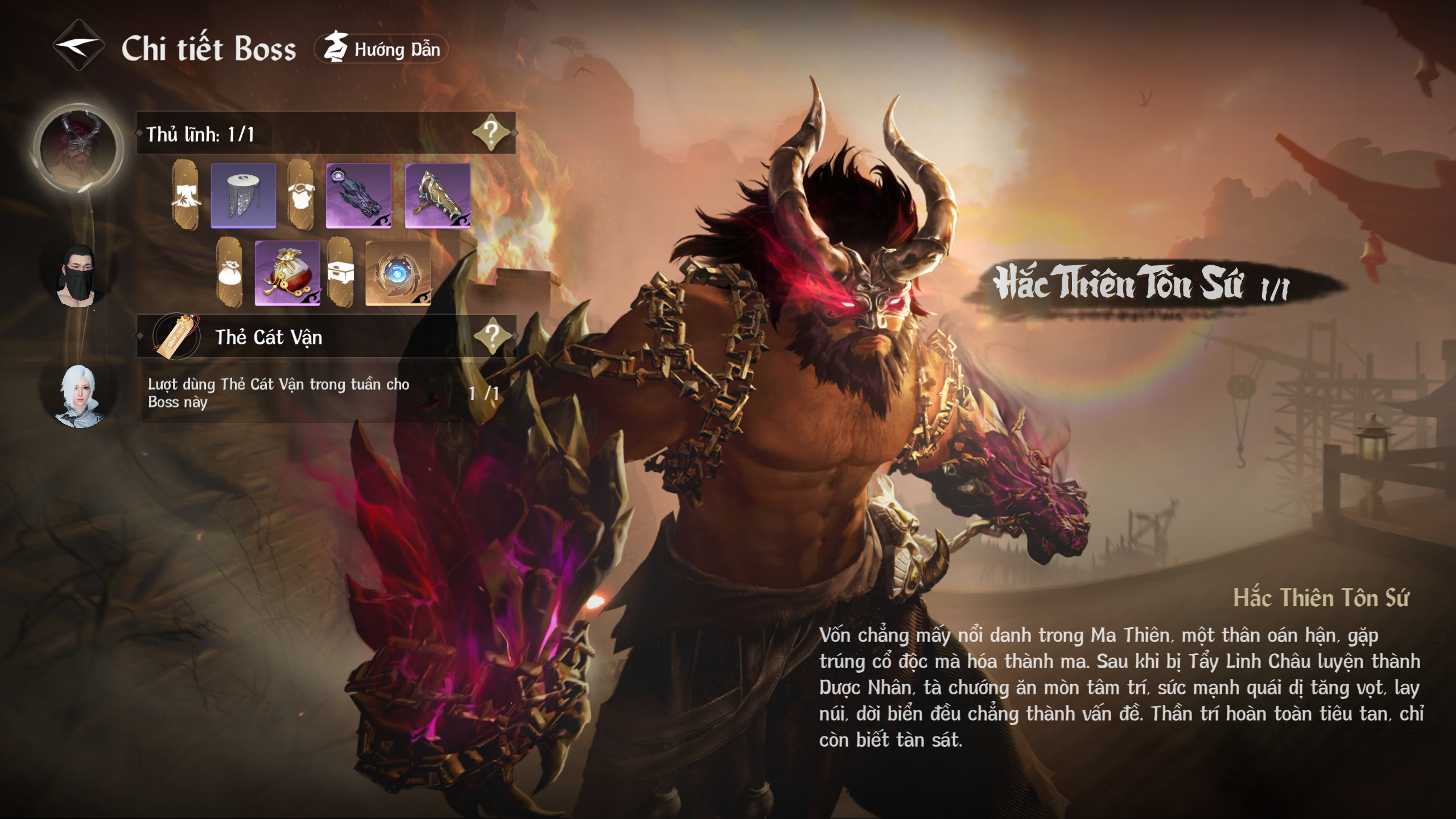 Hắc Thiên Tôn Sứ sẽ liên tục tích năng lượng. Mỗi lần năng lượng đầy, hắn sẽ dùng một kỹ năng quan trọng mới. Phá giải đúng cách sẽ khiến hắn vào trạng thái bị đánh gãy, dễ bị dồn sát thương.