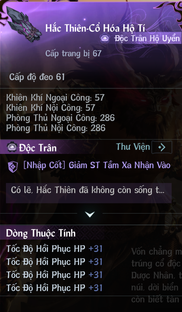 Ngoài ra, trang bị này còn mở khóa một nhánh kỳ ngộ truyền văn. Nếu bạn sở hữu món Độc Trân này, hãy nhớ theo dấu kỳ ngộ để khám phá câu chuyện phía sau nó nhé!