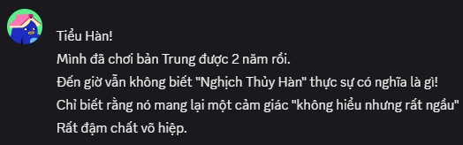 “Chơi Nghịch Thủy Hàn bản Trung suốt hai năm rồi, mà vẫn không biết Nghịch Thủy Hàn nghĩa là gì”